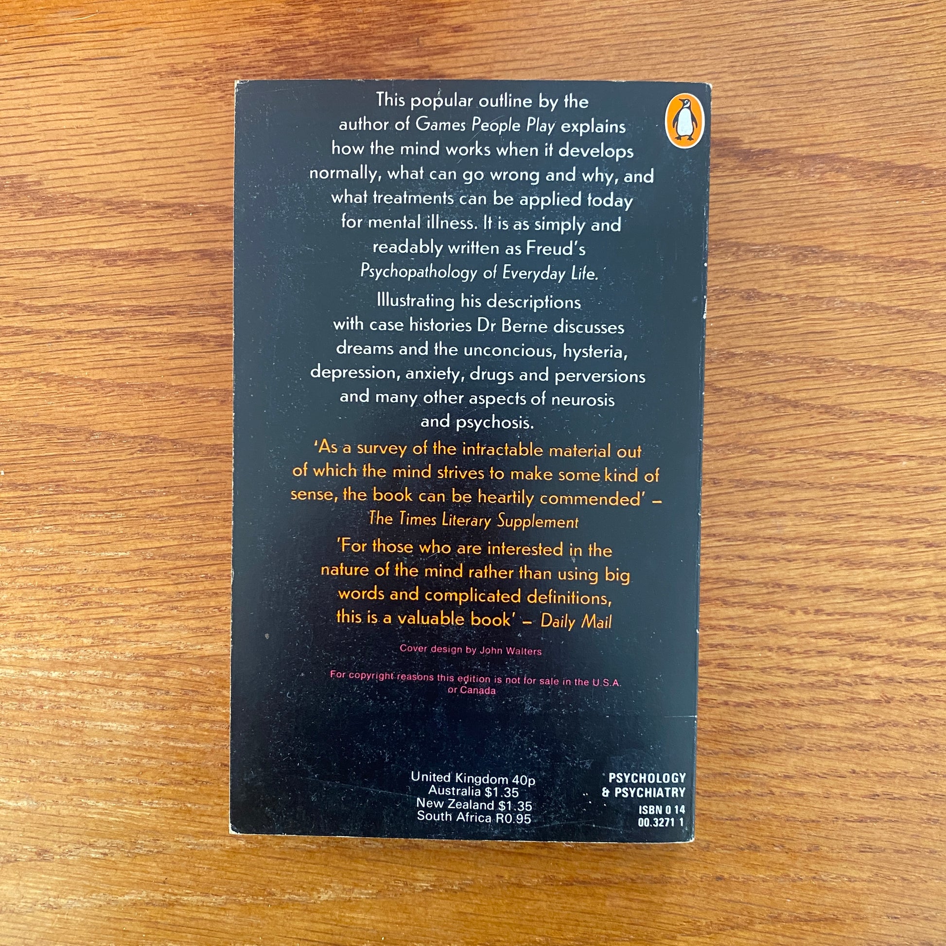 This book provides an accessible overview of psychiatric concepts and psychoanalytic theory. Eric Berne, a psychiatrist known for developing Transactional Analysis, explains complex ideas in simple terms, making them understandable for the general reader. The text covers key topics in psychiatry, including the nature of mental illness, the importance of interpersonal relationships, and the dynamics of human behavior. Berne also explores the therapeutic process, emphasizing the role of communication in healing. Overall, the book aims to demystify psychiatry and psychoanalysis, offering insights into how these fields can improve mental health and personal well-being.