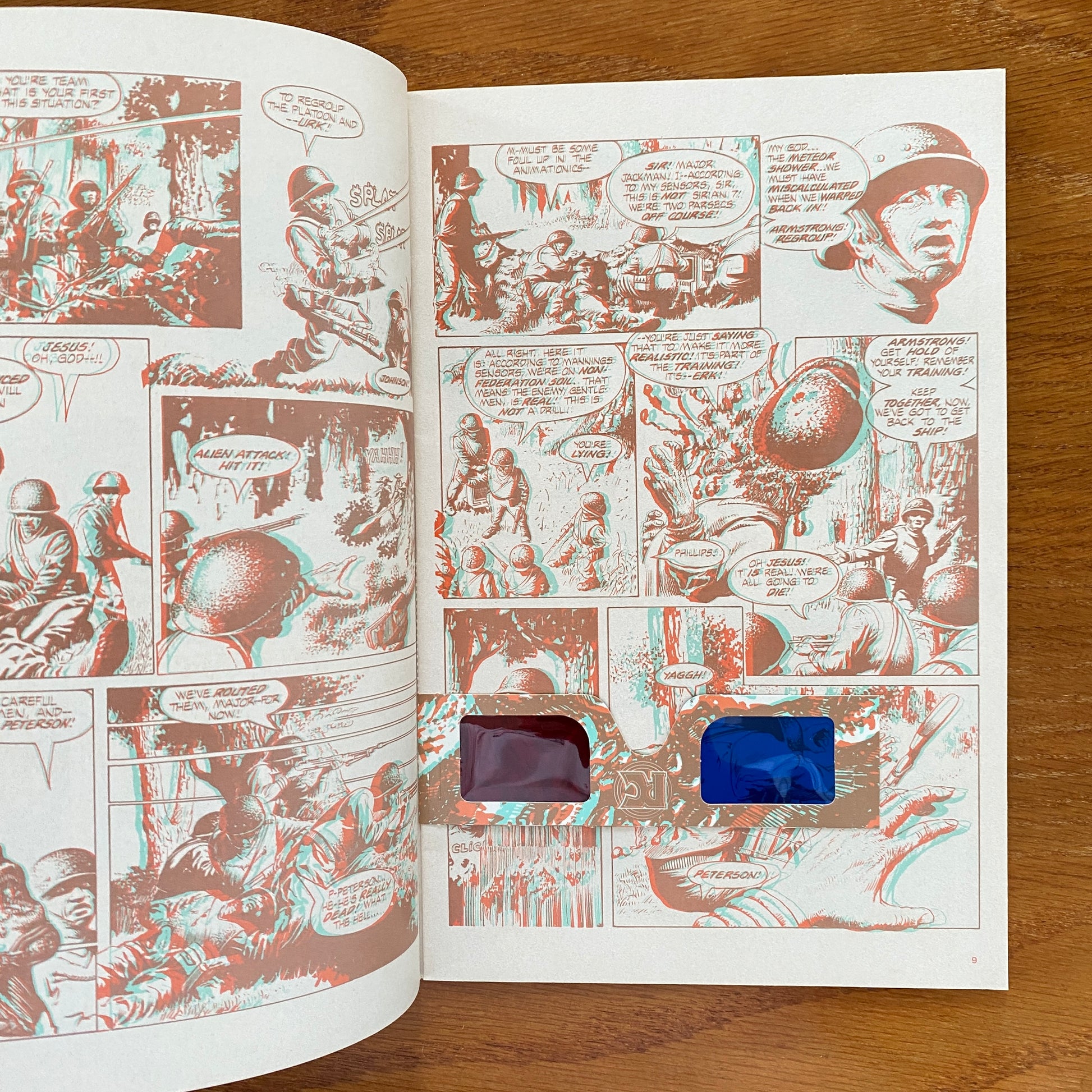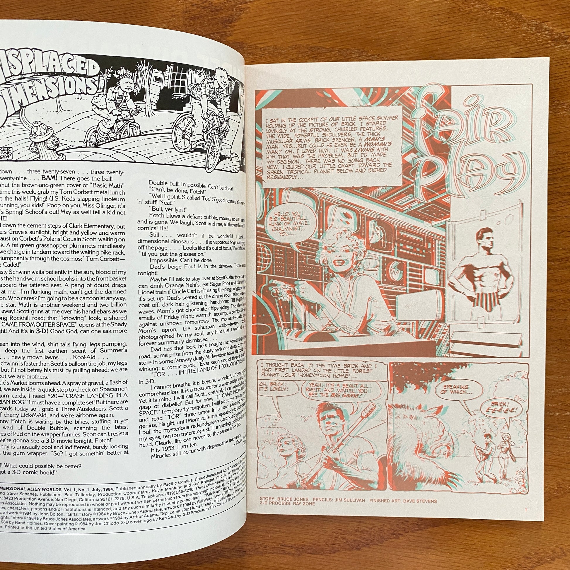 Includes 3-D glasses. Cover by Joe Chiodo. Written by Bruce Jones. Art by Jim Sullivan & Dave Stevens, John Bolton, Bill Wray, Art Adams and Rand Holmes. 3D process by Ray Zone and Tony Alderson. Featuring: "Fair Play"; "Field Drill"; "Gifts"; "Away Off There Amid the Softly Winking Lights"; and "Spaceman Go Home"! 32 pages, two color. Mature Readers.