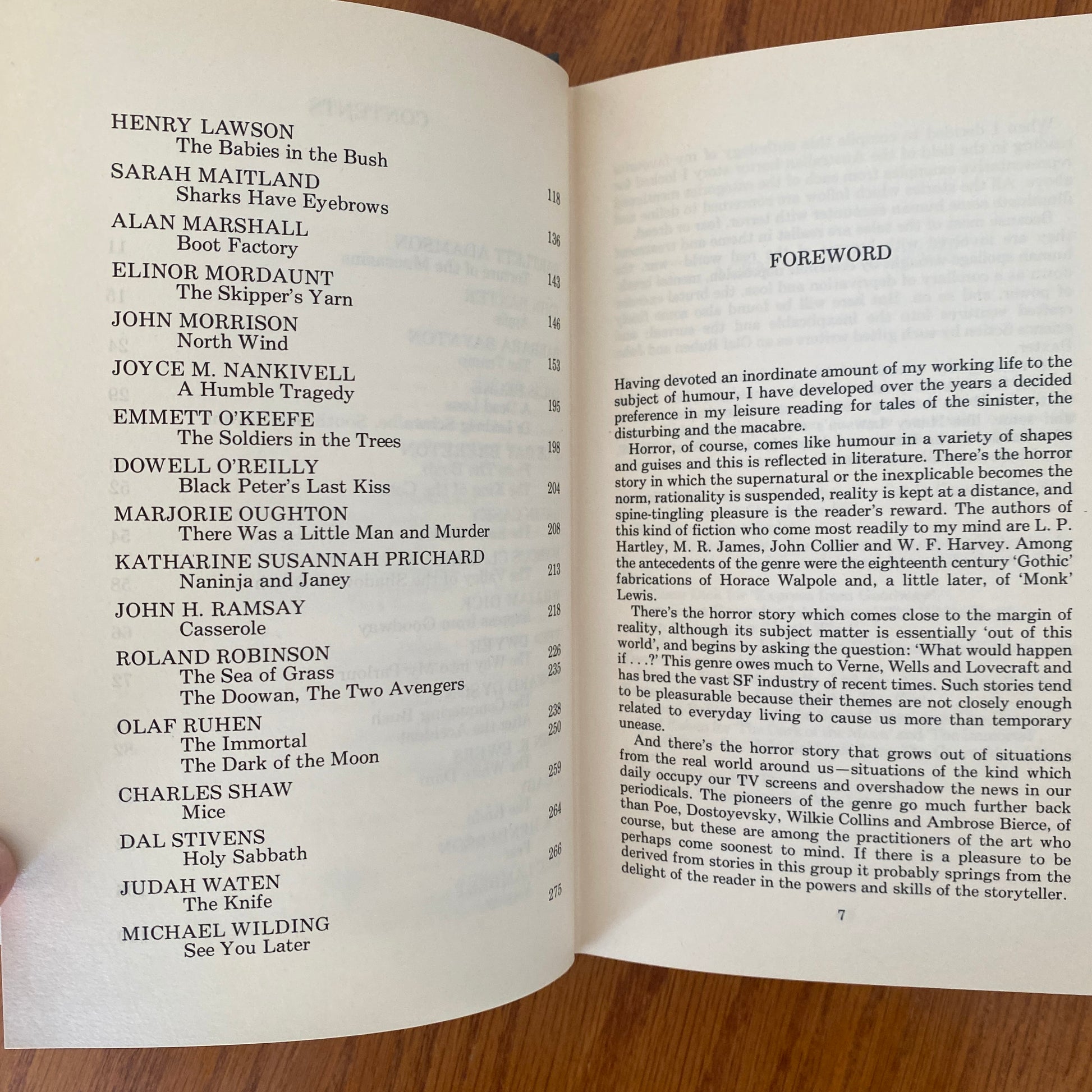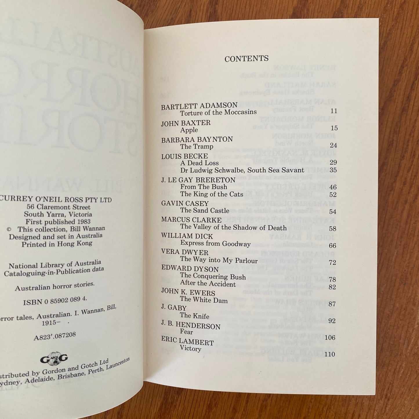 'The setting of these stories varies from the past to the future,from the everyday to the exotic, but a dark thread of horror runs through them all. Among the fine writers included in this chilling collection selected by Bill Wannan are John Baxter, Olaf Ruhen, Michael Wilding, john Morrison, Eric Lambert and Roland Robinson.'