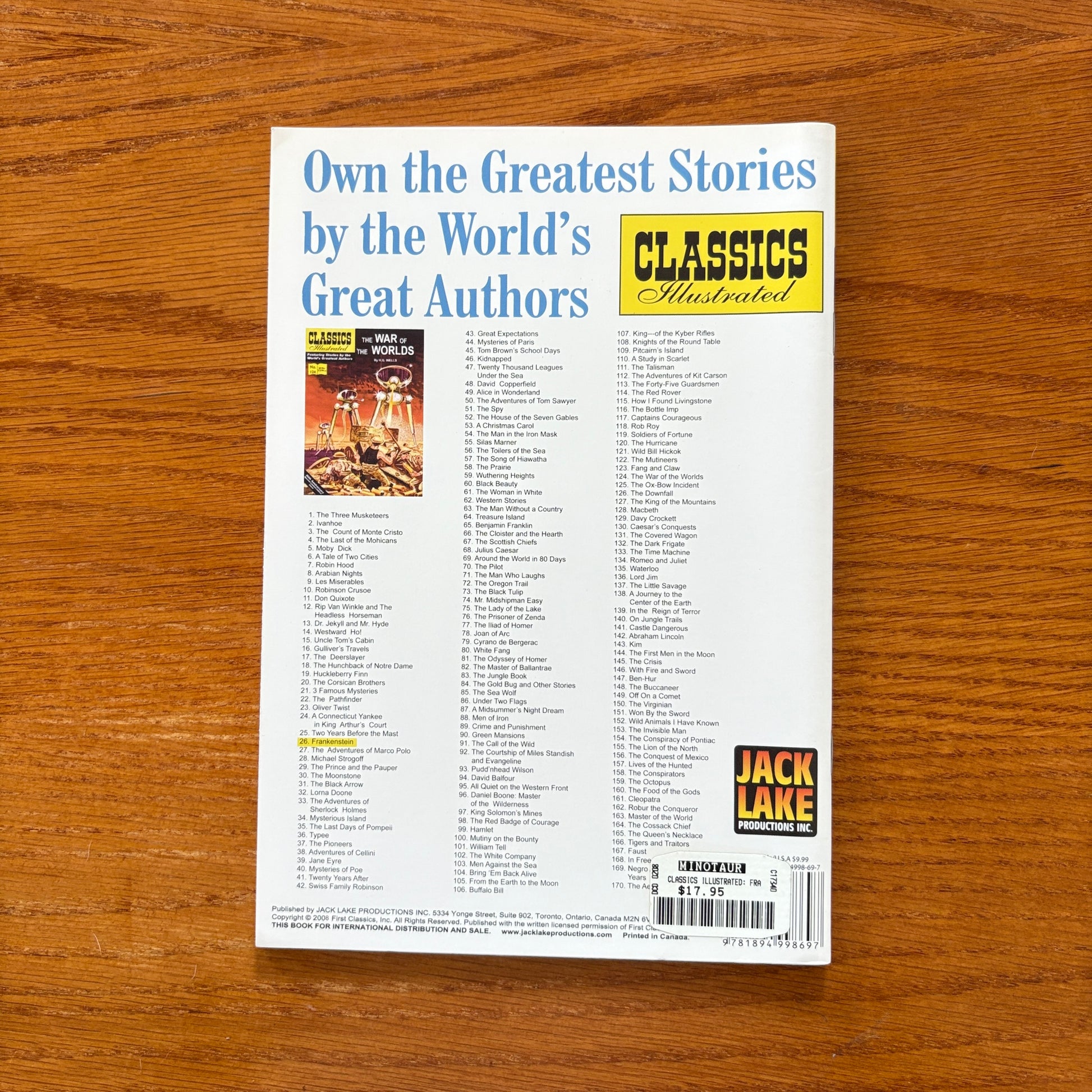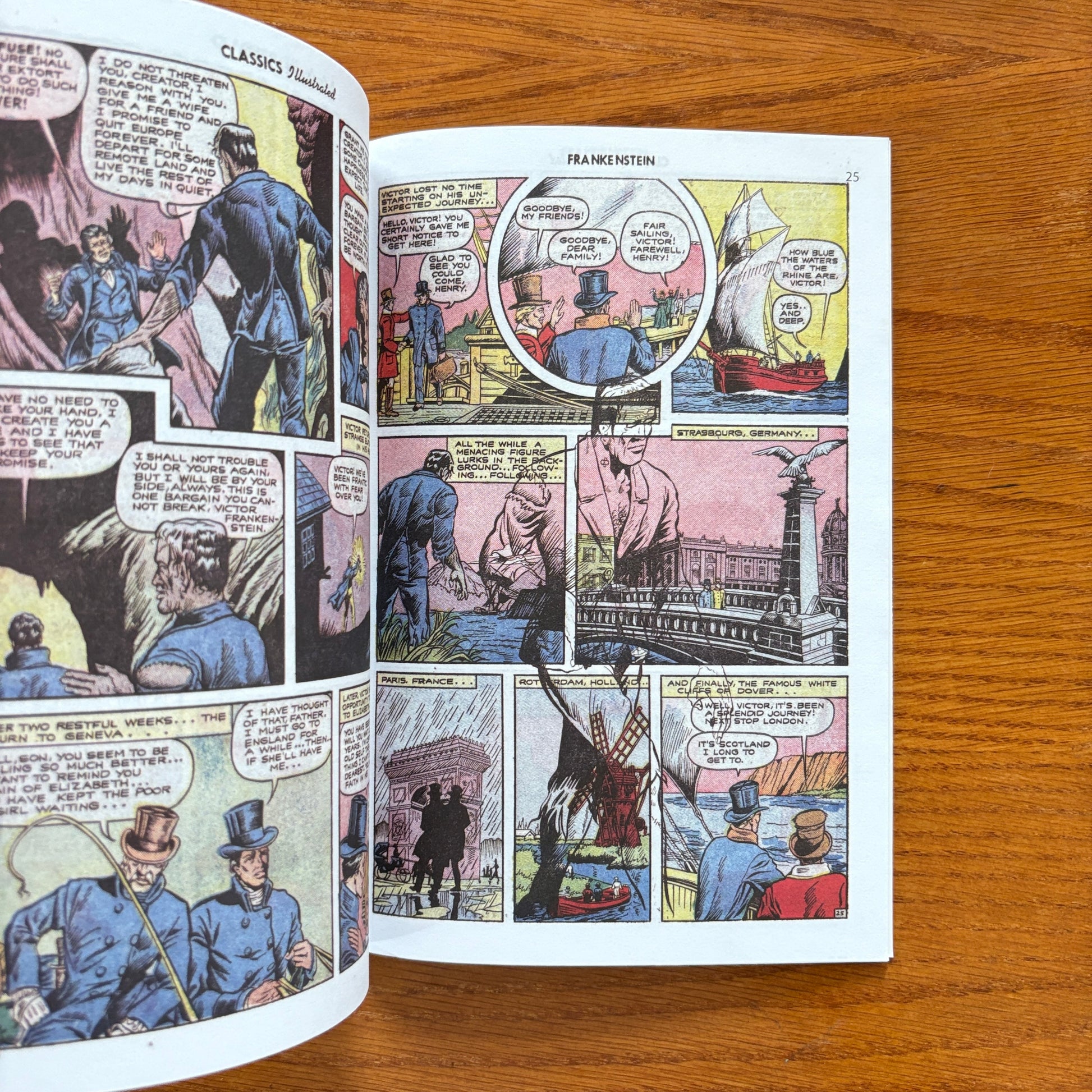 A real-deal monster classic. Classics Illustrated #26: Frankenstein drops Mary Shelley’s nightmare onto yellowing Golden Age newsprint—thick inks, thundercrack drama, and that unmistakable mid-century charm. It’s science gone wrong, guilt gone heavy, and a creature who feels way too human for a 10¢ comic. An eighth printing slice of history, eerie and elegant, perfectly worn at the edges. A must for horror heads, pulp fiends, and anyone who loves that crackly old-school comic-shop smell.