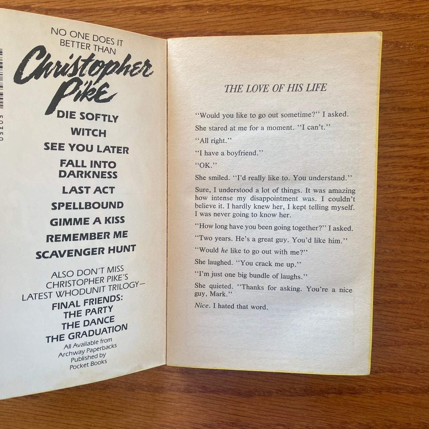 "See You Later" by Christopher Pike is a young adult science fiction novel that revolves around the life of Mark, a teenager who falls in love with a mysterious girl named Becky. Mark, who is recovering from a broken heart, meets Becky and her boyfriend, Vince, who seem perfect in every way. As Mark spends more time with them, he realizes that they possess knowledge and abilities that are beyond normal.