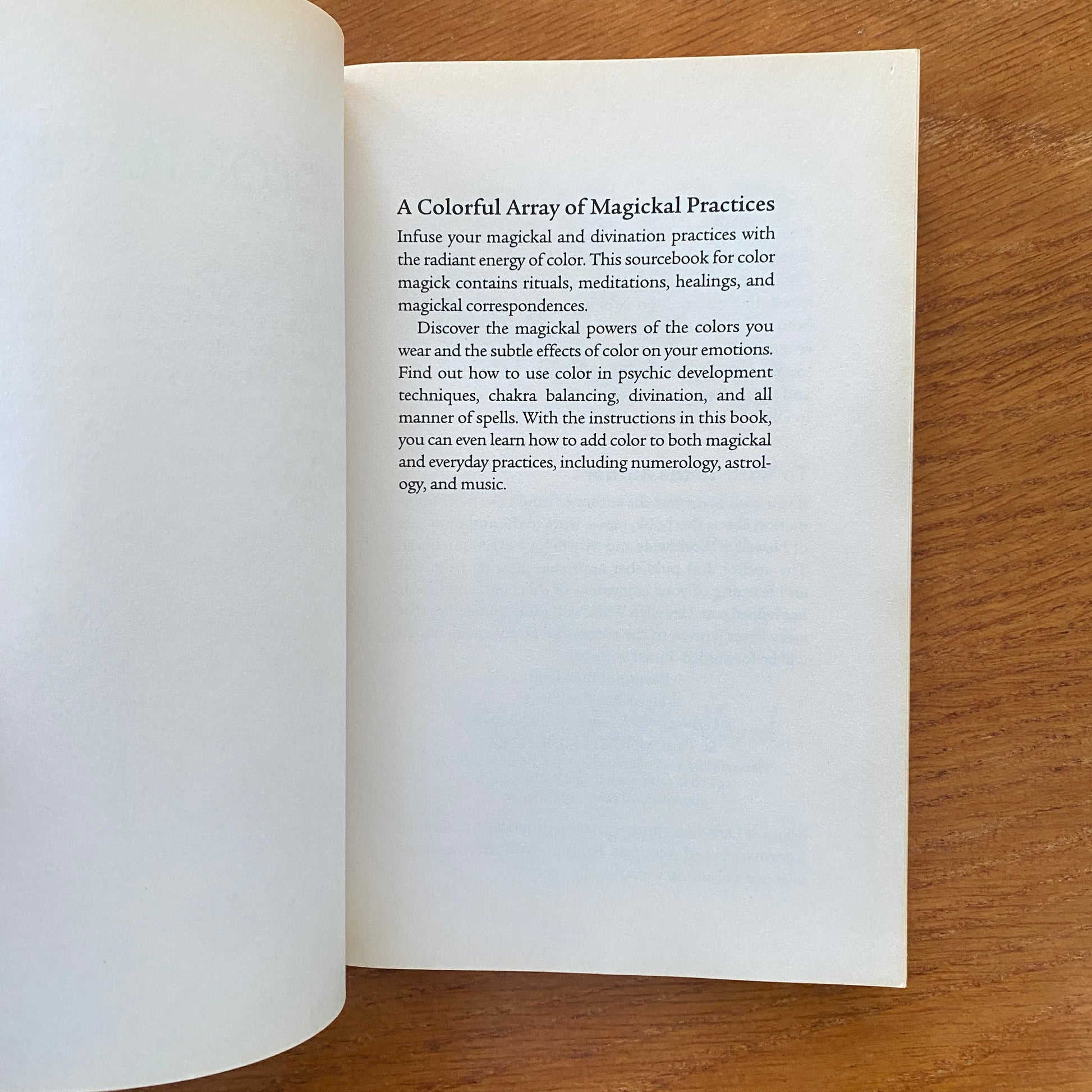Imbue your magic and spellwork with an array of colors and energetic correspondences―from vibrant red to tranquil blue to powerful violet, and all the colors in between. This book covers the full spectrum of color use in magick and healings, and provides instructions for a variety of simple, yet effective, techniques. You'll learn how to:
