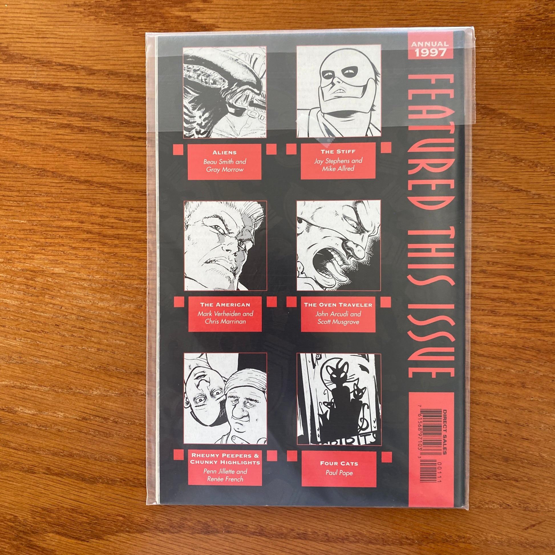 Body Bags Cover by Jason Pearson. The return of Jason Pearson's Body Bags! Aliens by Beau Smith and Gray Morrow! A collaboration between Madman's Mike Allred and Land of Nod's Jay Stephens! The world's first comic strip by Penn Jillette, of the comedy duo Penn & Teller! All this plus the amazing talent of Mark Verheiden, Chris Marrinan, Andrew Pepoy, Renée French, John Arcudi, Scott Musgrove, and Paul Pope! It'll keep you up at night and caffeinate you in the morning! 64 pages, B&W