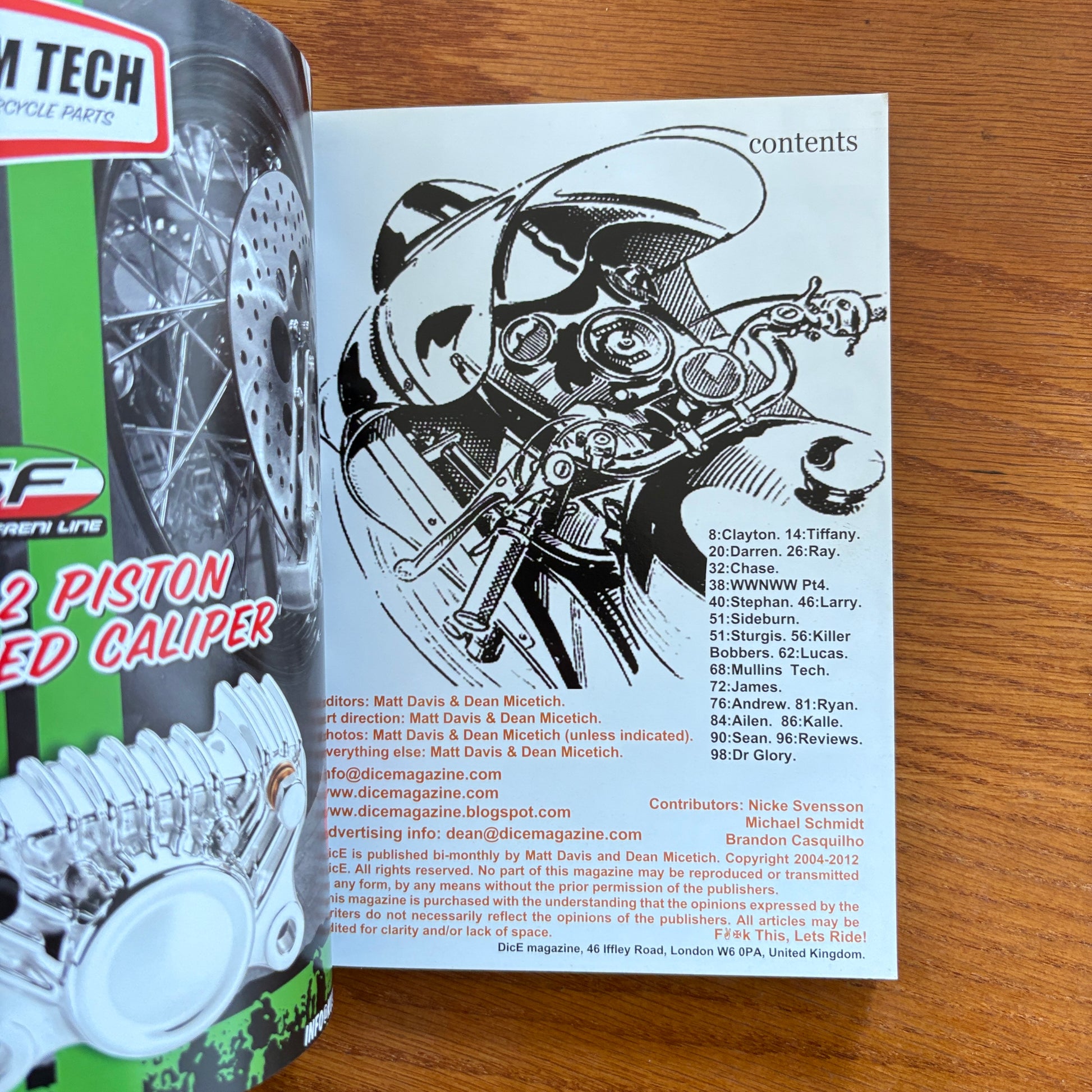 DicE feels like flipping through someone’s secret stash of inspiration: grainy film shots, choppers built in kitchens, vans with carpet walls, Japanese masters, Utah dirt kids, European oddballs, California lifers, tattooers, surf rats, metalheads, and whoever else shows up with a machine and a point of view. Every issue is a mixtape—equal parts chaos, craft, style, humour, and heart.