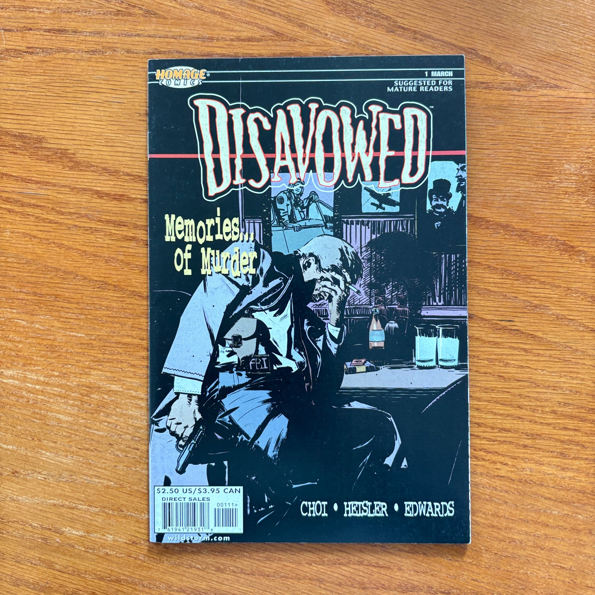 WRITTEN BY BRANDON CHOI AND MICHAEL HEISLER; ART AND COVER BY TOMMY LEE EDWARDS Like his law-enforcer father and grandfather before him, FBI Special Agent Dalton Morrell has a remarkable gift: he possesses the memories of his ancestors. Now Dalton joins others with gifts of their own in a common cause ? saving the world from a mysterious, chillingly malevolent force ? in DISAVOWED, an ongoing HOMAGE COMICS series that's a creepy, shudder-inducing excursion into the supernatural. Written by Brandon Choi (GEN13) and Michael Heisler (DV8), with atmospheric art and covers (the first four of which fit together to form a single, powerful image) by Tommy Lee Edwards (The Blair Witch Project, WILD TIMES: DEATHBLOW), DISAVOWED begins with Dalton haunted by nightmares of the distant past...nightmares revolving around a vicious murderer whose crime spree seems to have lasted for nearly a century, continuing into the present. But Dalton's not alone in combatting the Killer with a Thousand Faces for long, as he's soon joined by other strangely-powered entities ? among them a magician with true mind-over-matter powers and a Russian-born empath trained by I.O. ? who have had run-ins of their own with the secret power that lurks behind this supernatural killer. Joined by a surprising fourth member, these heroes stand together against an evil that is nearly impossible to define ? and even harder to defeat ? struggling to foil its plans for global annihilation as the end of the Millennium approaches.