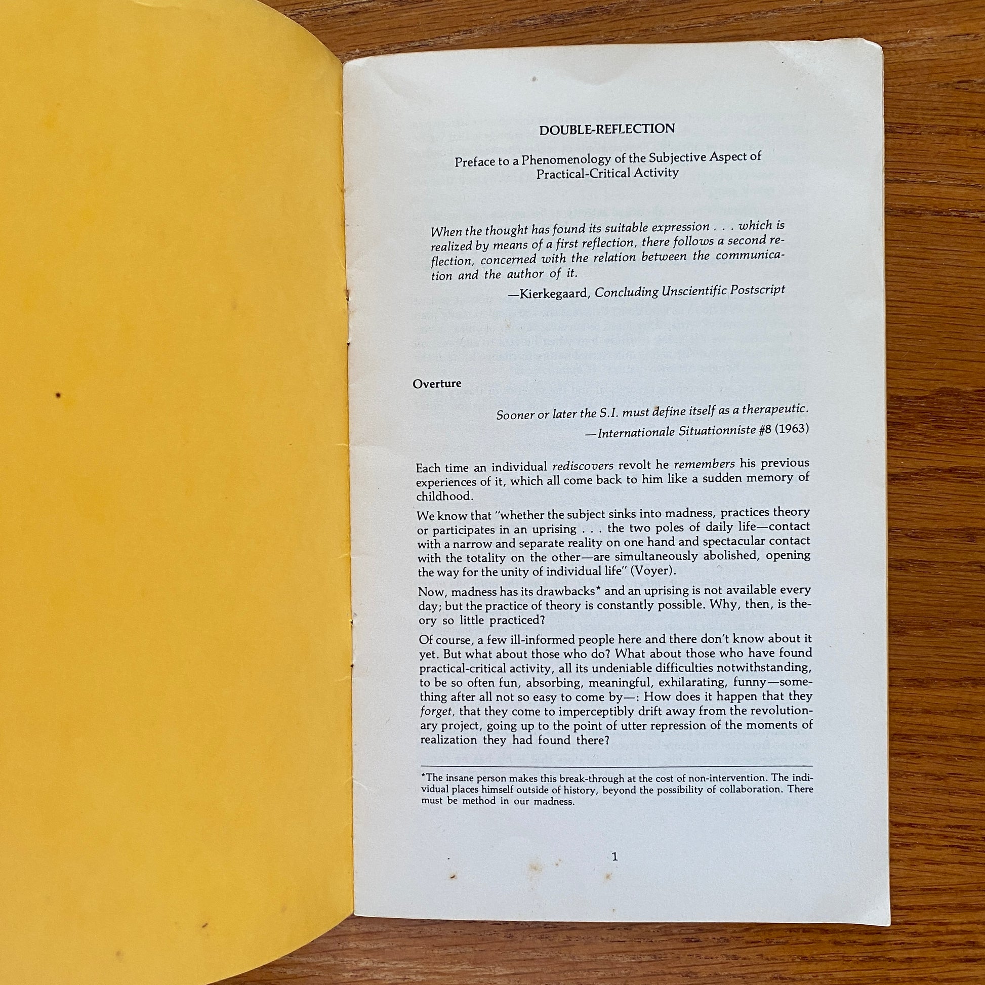 Double-Reflection: Preface to a Phenomenology of the Subjective Aspect of Practical-Critical Activity