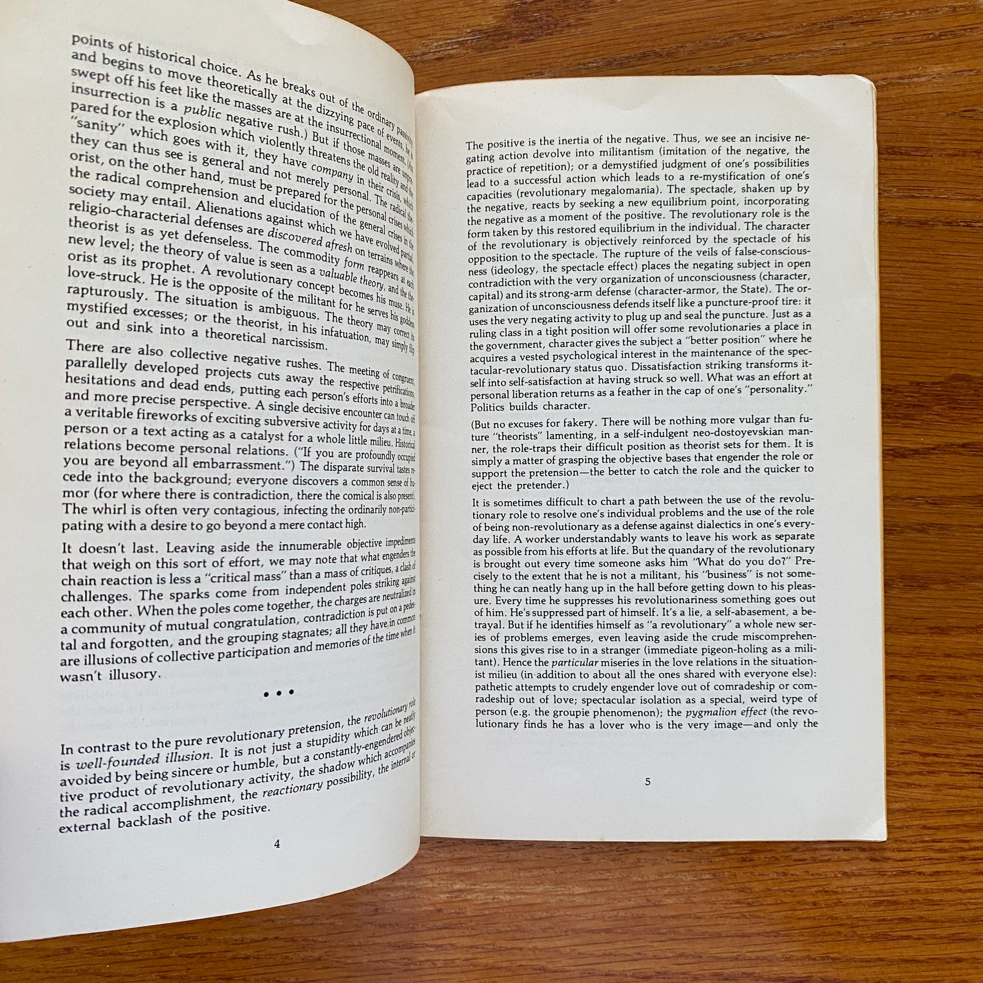 A Situationist title from Ken Knabb, in which he explores the psychological dimension of radical activity and presents “revolutionary practice as a series of acquirable techniques transmitted hierarchically through a supervised apprenticeship which created a community with its own standards of conduct and criteria of judgment” (Cronin, “The American Situationists: 1972-77”).