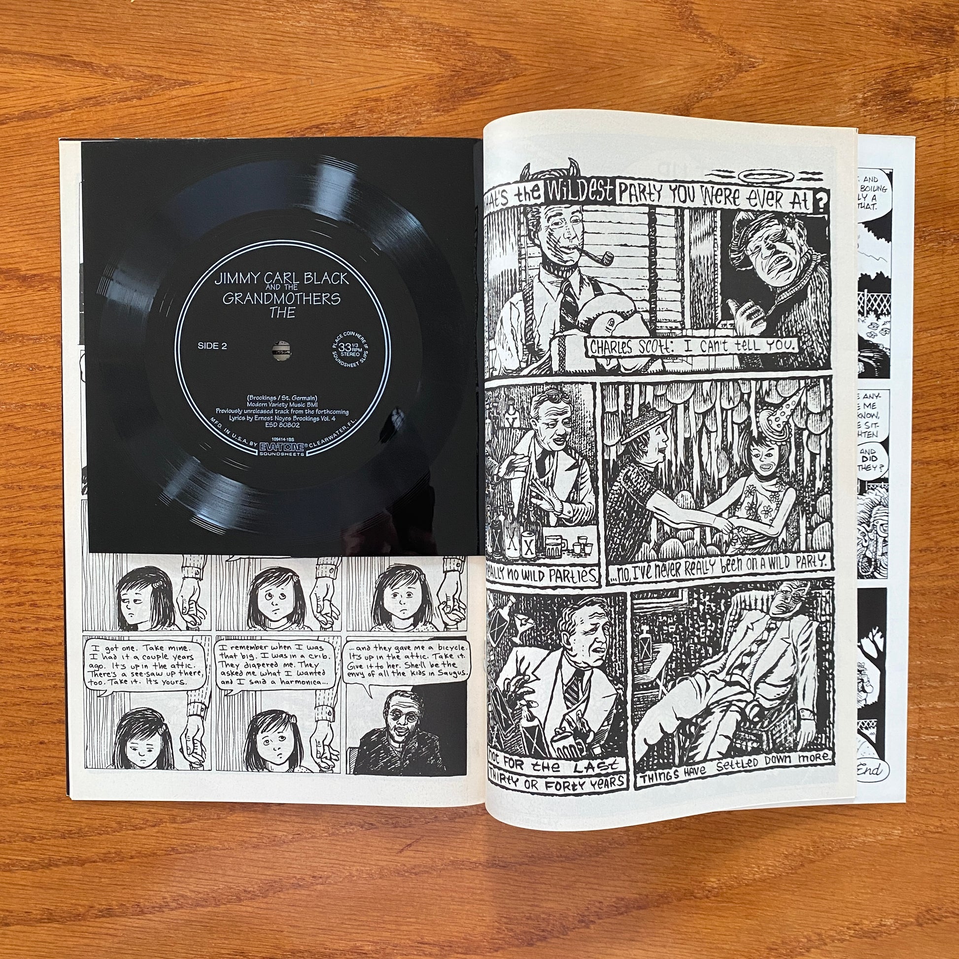 Flexi-disc bound into issue featuring two songs based on the poetry of Ernest Noyes Brookings. "Skin," performed by Brave Combo, from the album "Place of General Happiness: Lyrics by Ernest Noyes Brookings Volume 2"; and "The" performed by Jimmy Carl Black and the Grandmothers, from the album "Lyrics by Ernest Noyes Brookings Vol. 4"