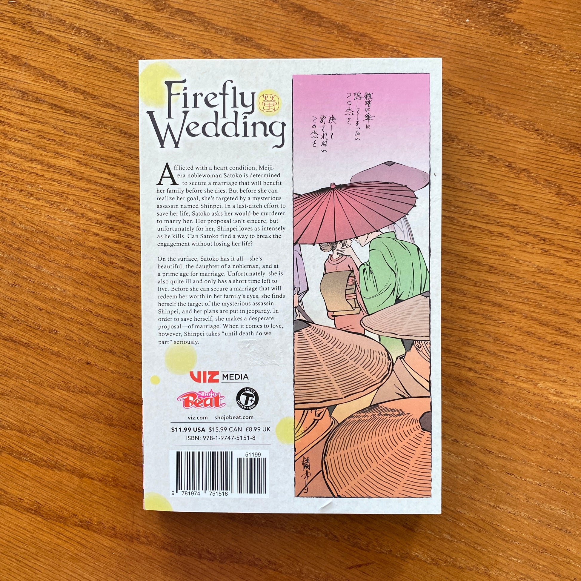 On the surface, Satoko has it all—she’s beautiful, the daughter of a nobleman, and at a prime age for marriage. Unfortunately, she is also quite ill and only has a short time left to live. Before she can secure a marriage that will redeem her worth in her family’s eyes, she finds herself the target of the mysterious assassin Shinpei, and her plans are put in jeopardy. In order to save herself, she makes a desperate proposal—of marriage! When it comes to love, however, Shinpei takes “until death do we part” seriously.