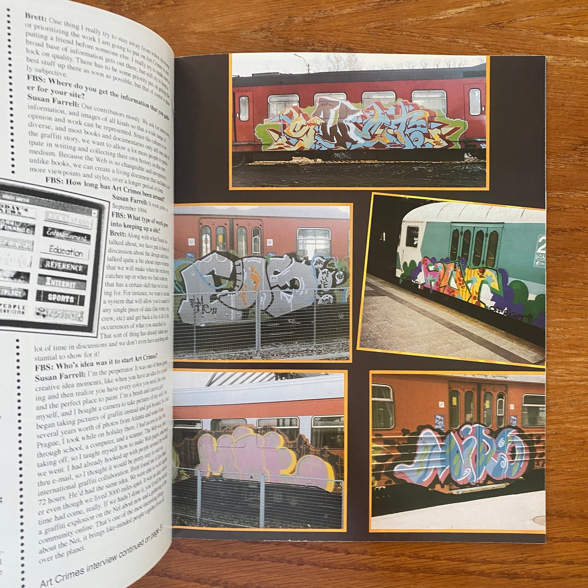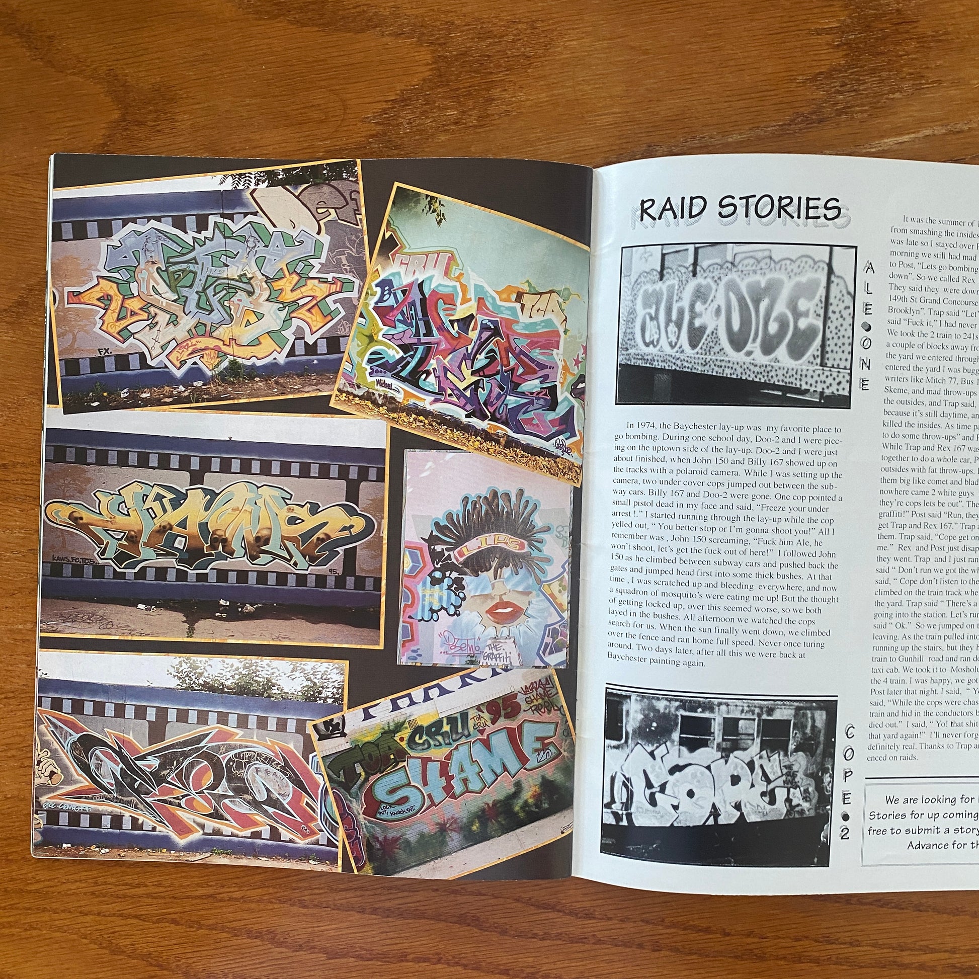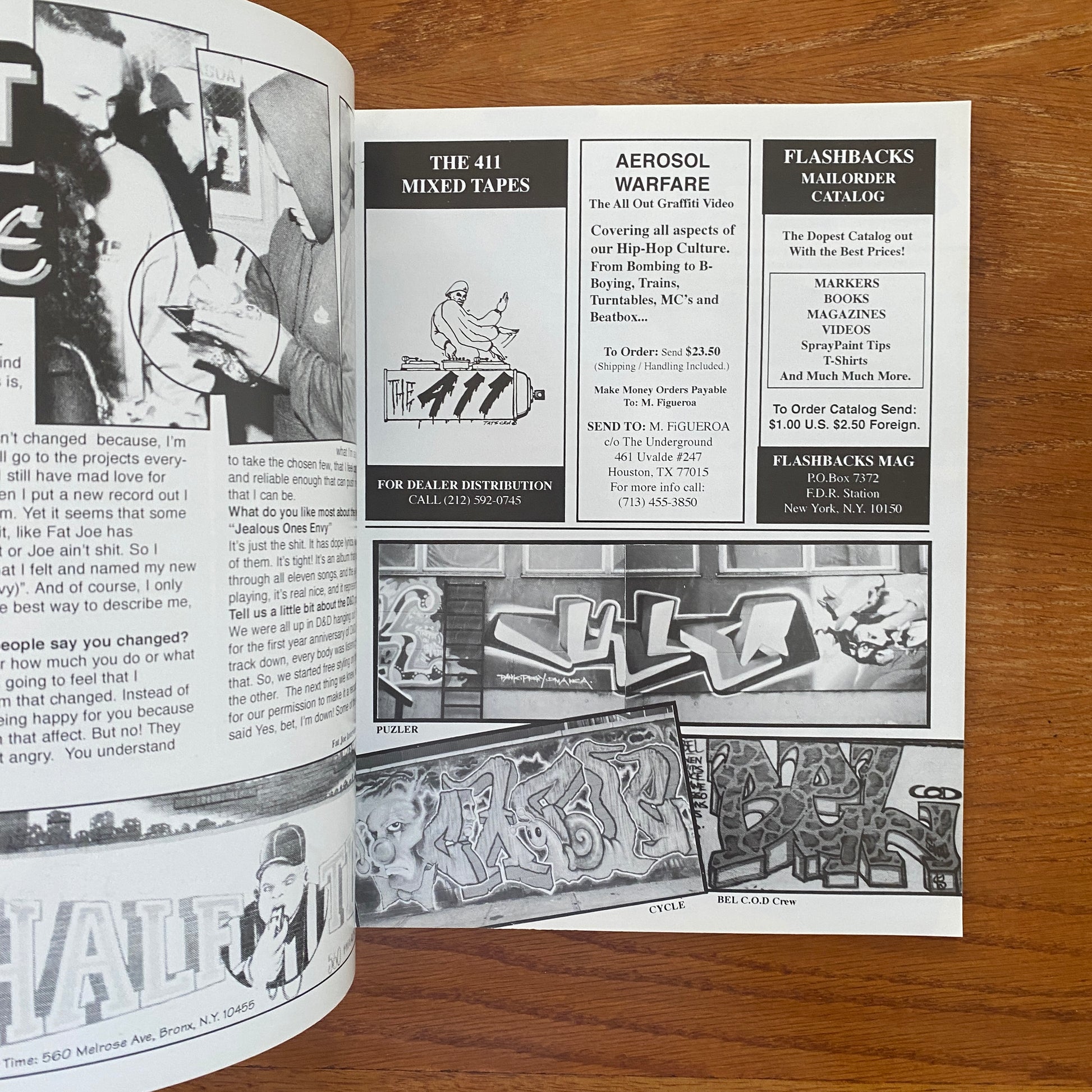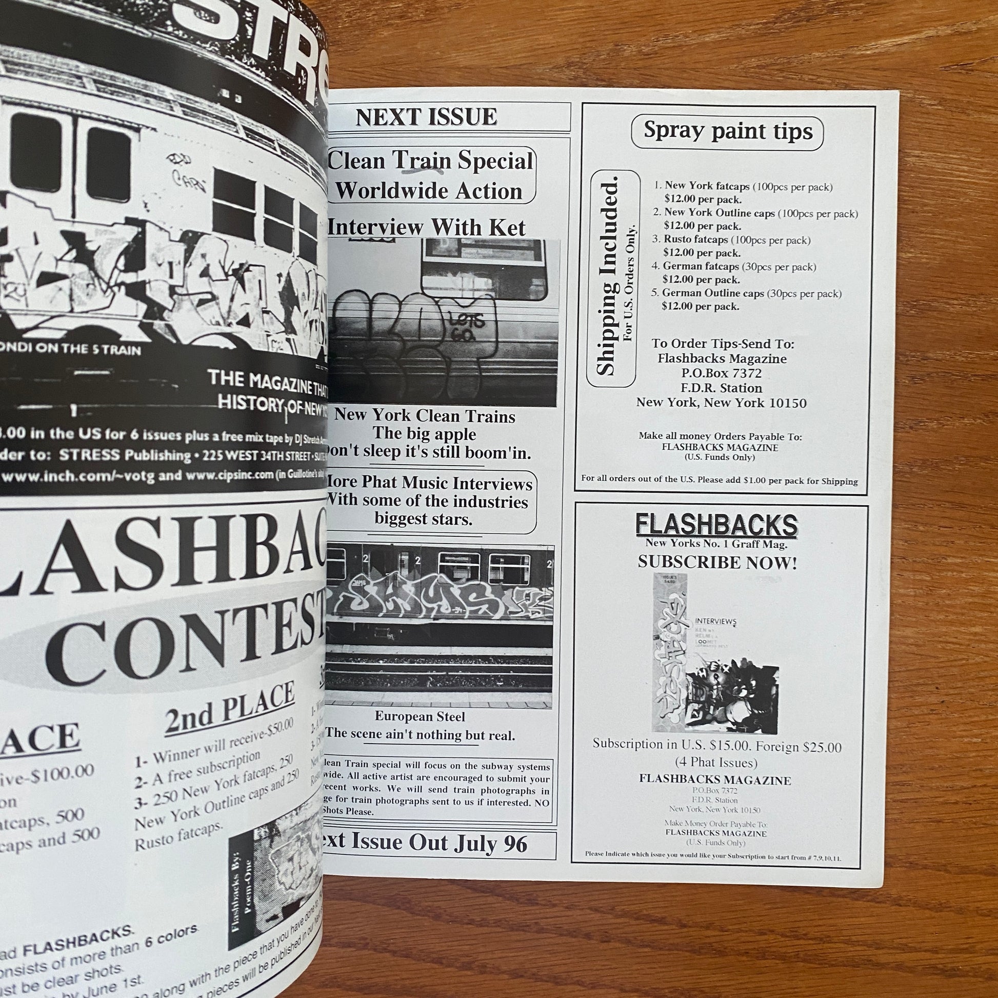 The photos do a great job of reminding current writers of what graffiti once was like, and more importantly, what graffiti is still all about. Since many of the photos are 10-15 years old, the picture quality isn't always the best, but Flashbacks nonetheless does an exemplary job of displaying the fathers of our culture in the best way possible. Flashbacks also features great interviews with just about every old-school king you can imagine, and well-written articles on assorted graff topics, which makes for an all-around great magazine.