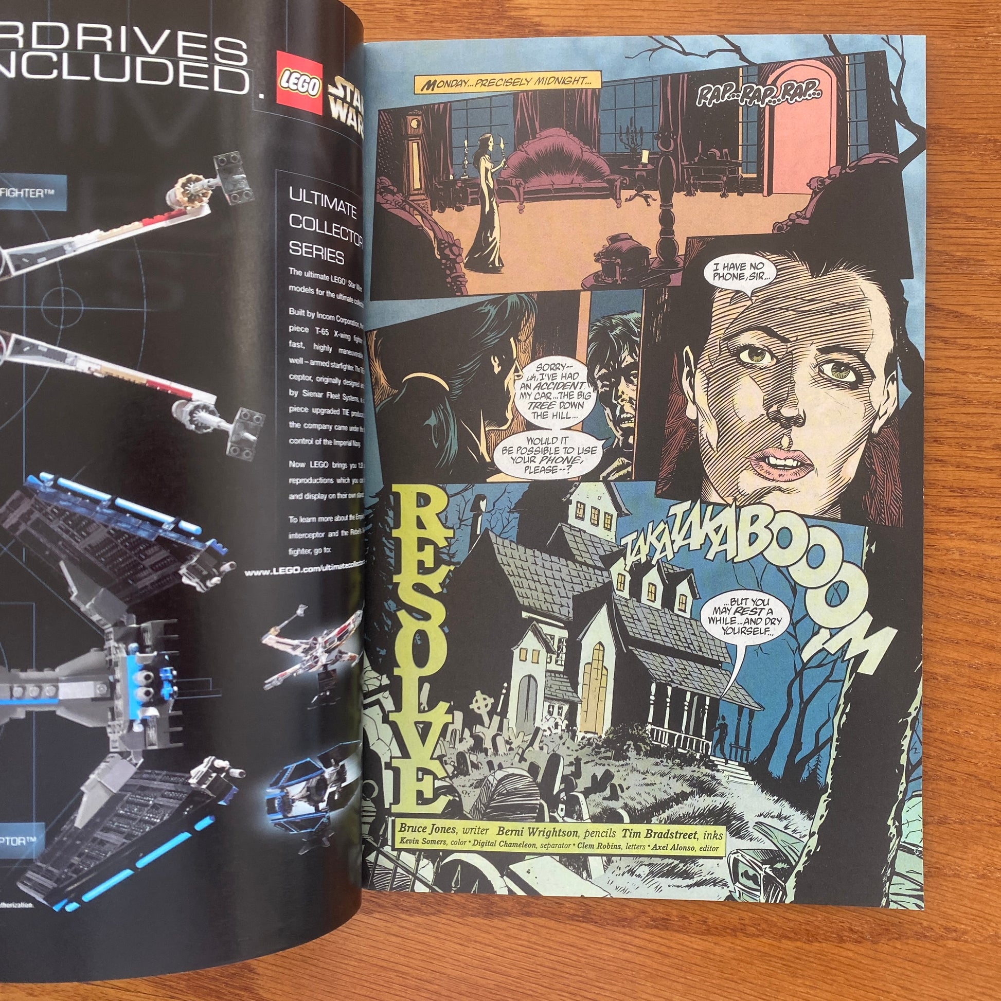 WRITTEN BY BRUCE JONES, TED MCKEEVER AND DARKO MACAN; ART BY BERNIE WRIGHTSON, TIM BRADSTREET, TED MCKEEVER, AND TIM LEVINS; PAINTED COVER BY MICHAEL WM. KALUTA In stores July 26. Three scorching tales to get you hot under the collar. A man with car trouble calls on the wrong woman for help in "Resolve" (written by Bruce Jones with art by Bernie Wrightson and Tim Bradstreet); a man obsessed by the bizarre death of his childhood friend uses unorthodox means to discover his dying wish in "Grave Wisdom" (written and illustrated by Ted McKeever); and an amorous young man gets to live out a sexual fantasy in "If Wishes had Wings" (written by Darko Macan with art by Tim Levins). MATURE READERS