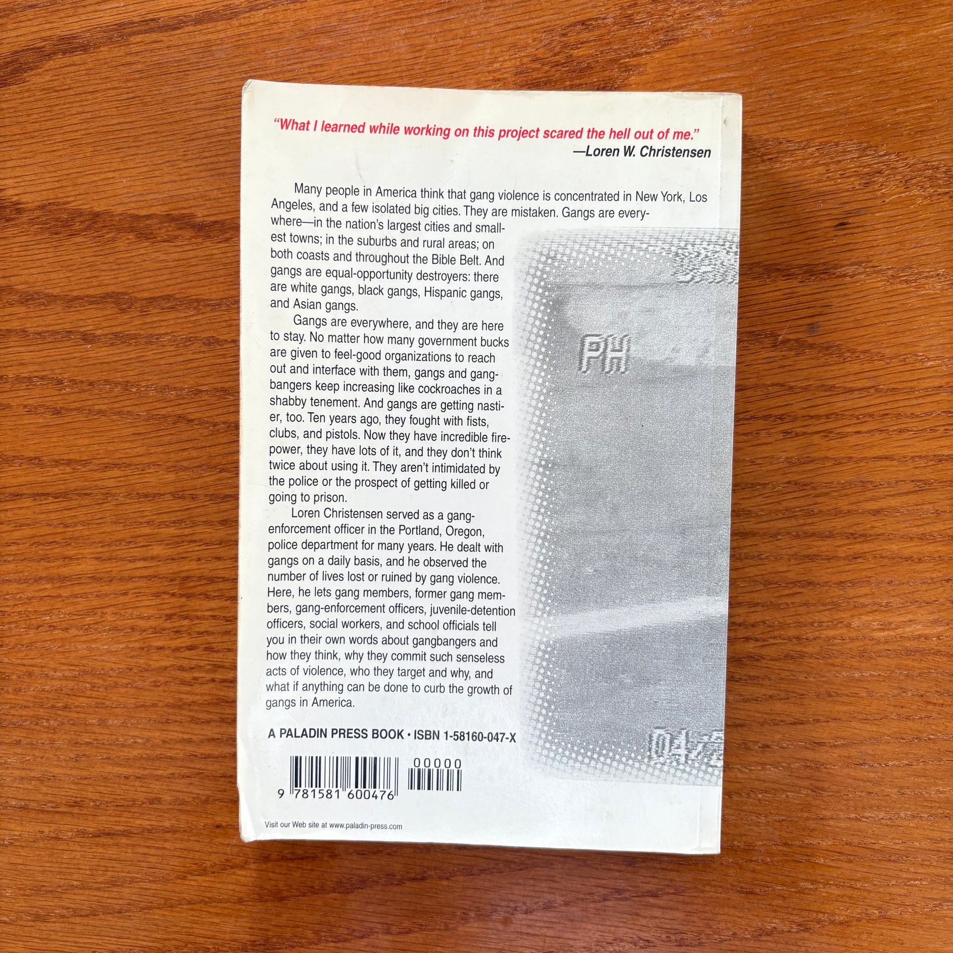 They are mistaken, says Loren Christensen, a veteran Portland, Oregon, gang-enforcement officer. After completing Skinhead Street Gangs, Christensen went back to the streets to see what's happening with gangs, and what he found scared the hell out of him! He found that gangs are everywhere and are here to stay - in the big cities and small towns, in the suburbs and the rural areas, on both coasts and in the heartland. His research also showed that gangs are equal-opportunity destroyers.
