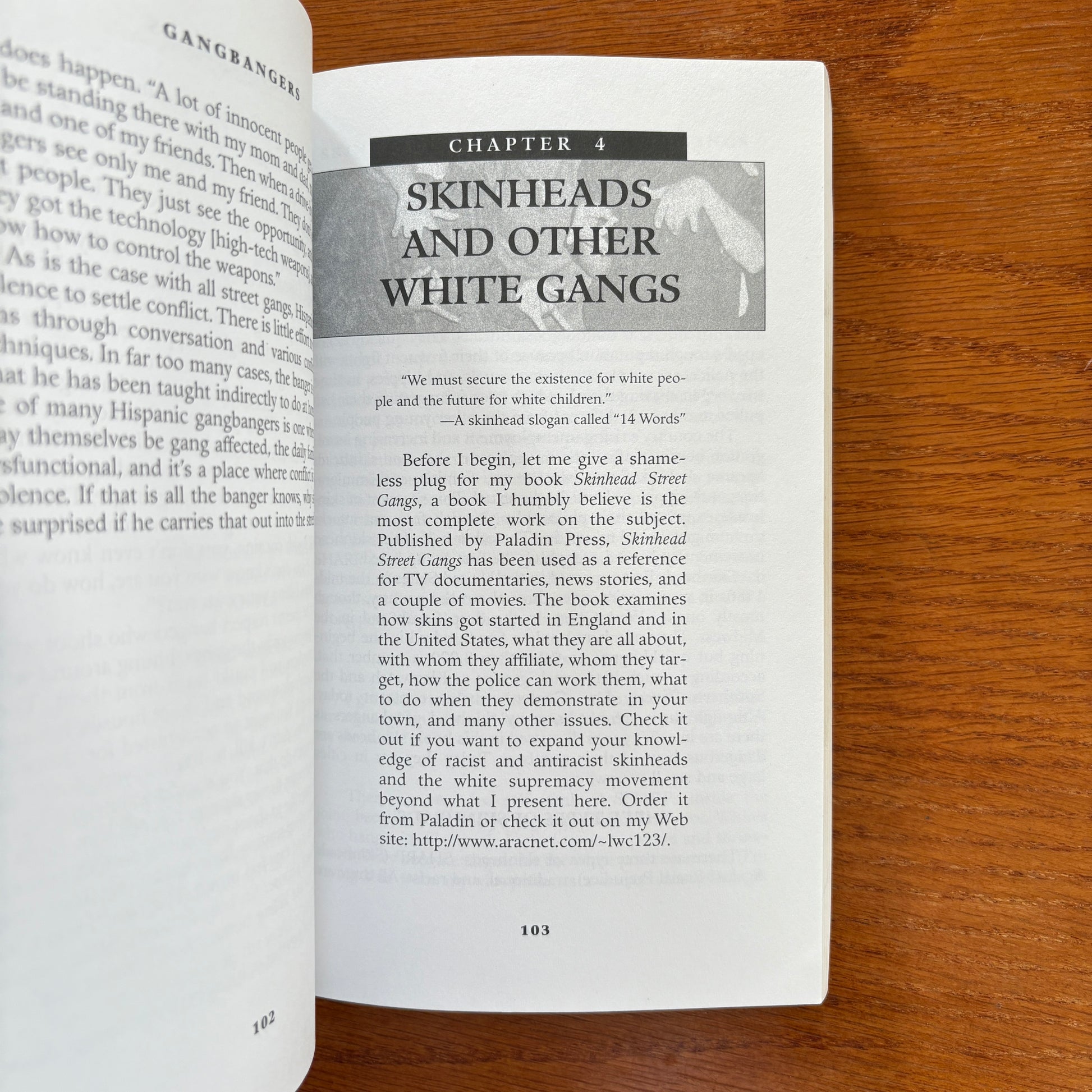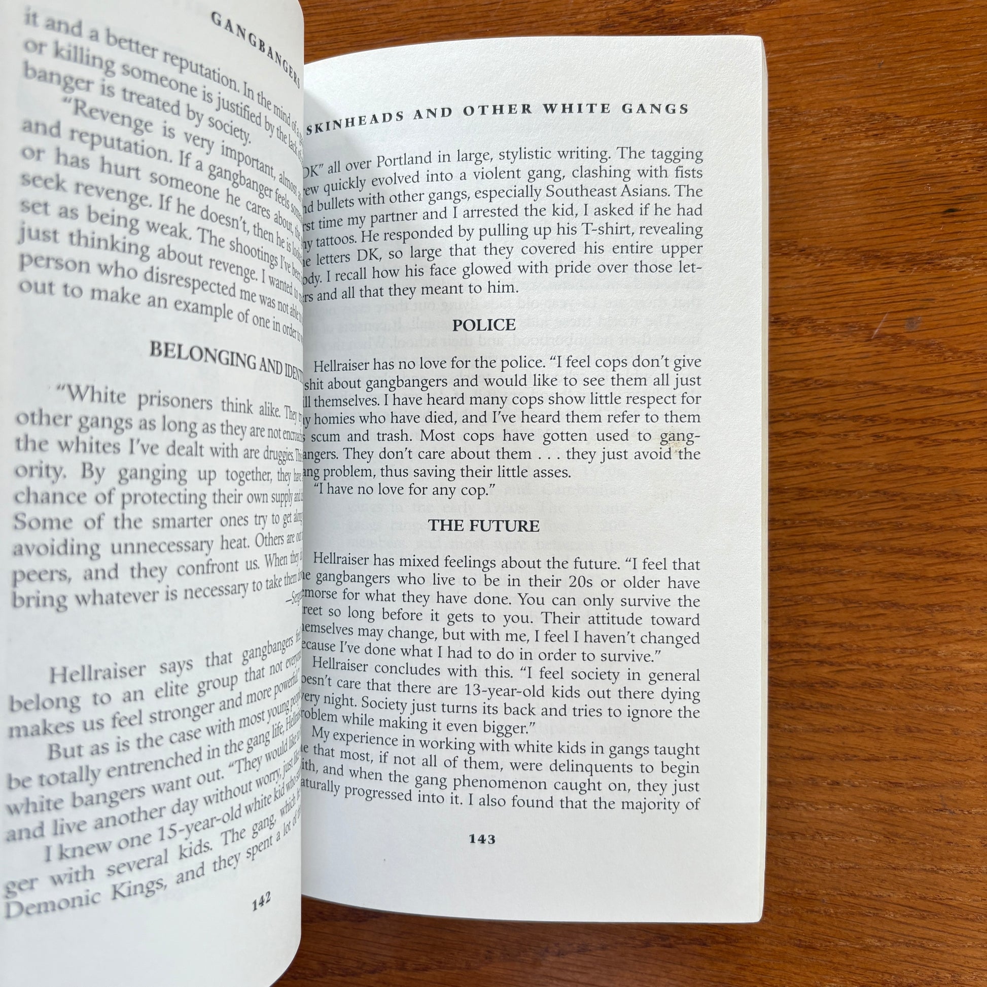 Their members - and victims - are white, black, Hispanic and Asian. His most disturbing discovery was that gangs are nastier than ever. Ten years ago gangbangers fought with fists, clubs and pistols. Now they have lots of incredible firepower, and they don't think twice about using it. Here, Christensen lets gang members, former gang members and street cops tell you in their own words how gangbangers think, why they are so violent, who they target and what (if anything) can be done to curb the growth of gangs in America.