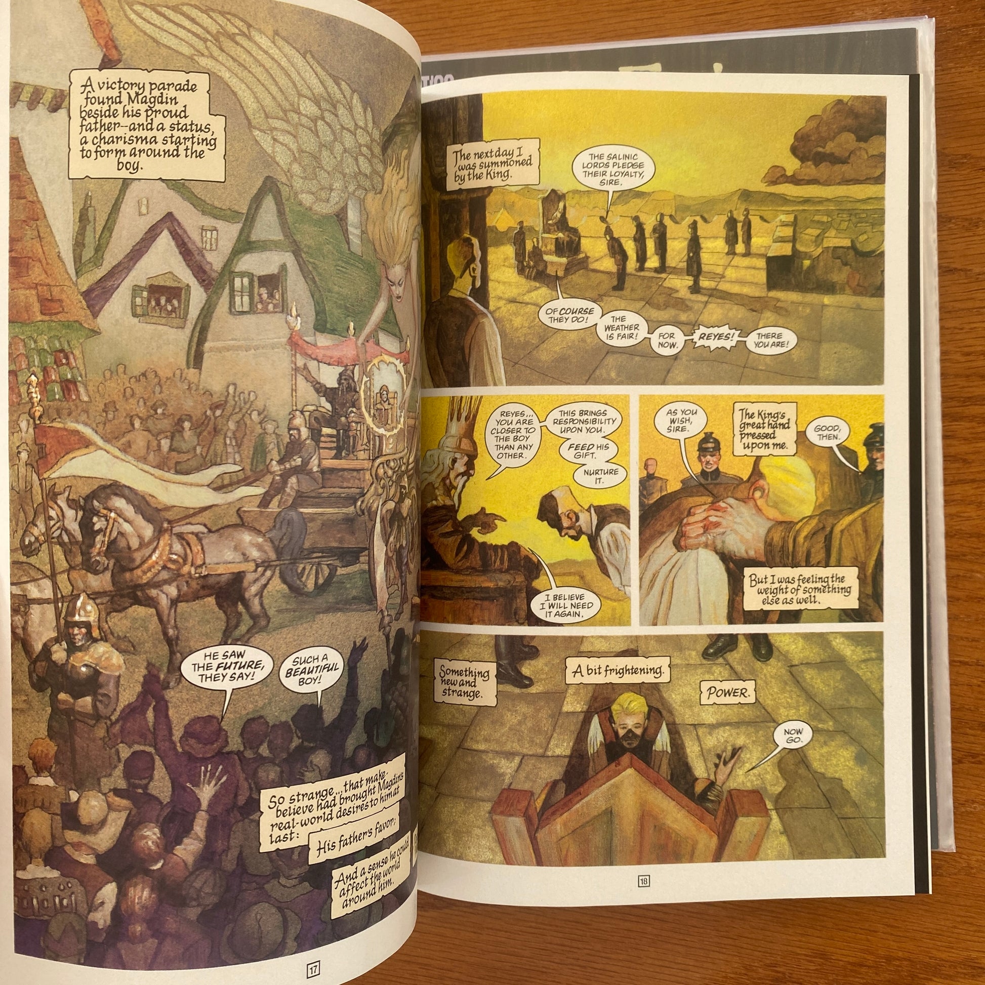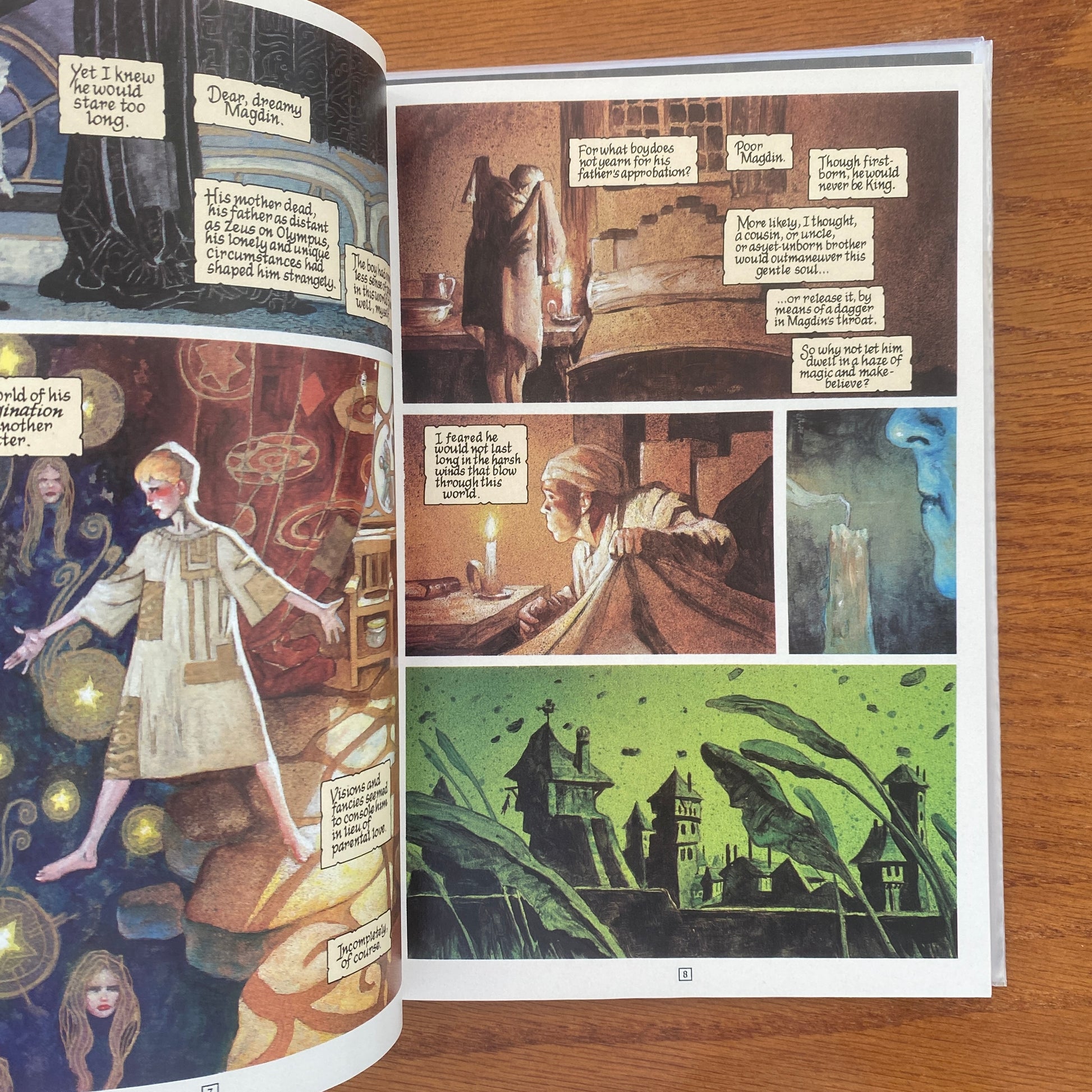 Magdin, prince of a mythical European realm, has a vision--a vision his father, the King, turns into military strategy. Once thought a simpleton, Magdin is hailed as a seer, but no one realizes that his visions are merely poetic retellings of history lessons learned from his tutor. But in a land torn by war and religious bigotry, a secret such as this cannot be kept for long...and soon Magdin is a critical pawn in a game of savage political intrigue. Written by Paul Chadwick. Painted art and cover by John Bolton.