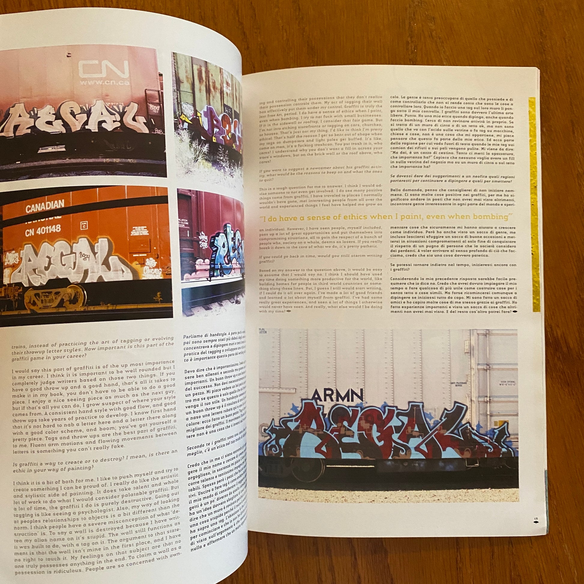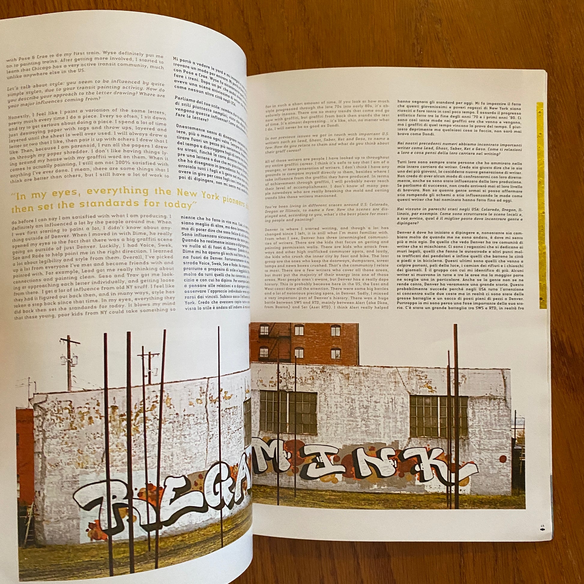 Its easy to see the creators have an eye for detail, leaning heavily on graphic design influence. The magazine often covers bombing, hand styles, trains, streets and the underground art scene.