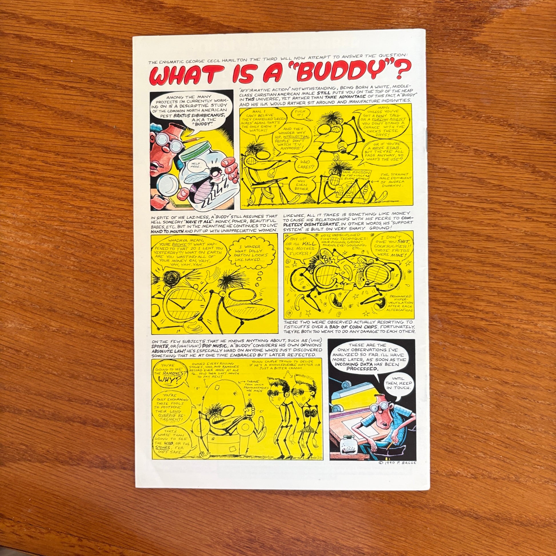 "Buddy Bradley is not His Brother's Keeper" features a mean and angry Butch Bradley who has grown up (literally, but not necessarily emotionally) in the interim between his appearances in Neat Stuff and his reintroduction here. "Whatever Happened to Babs Bradley?" catches up with Buddy's sister, a divorced, destitute, highly dysfunctional mother of two. Written and drawn by Peter Bagge.