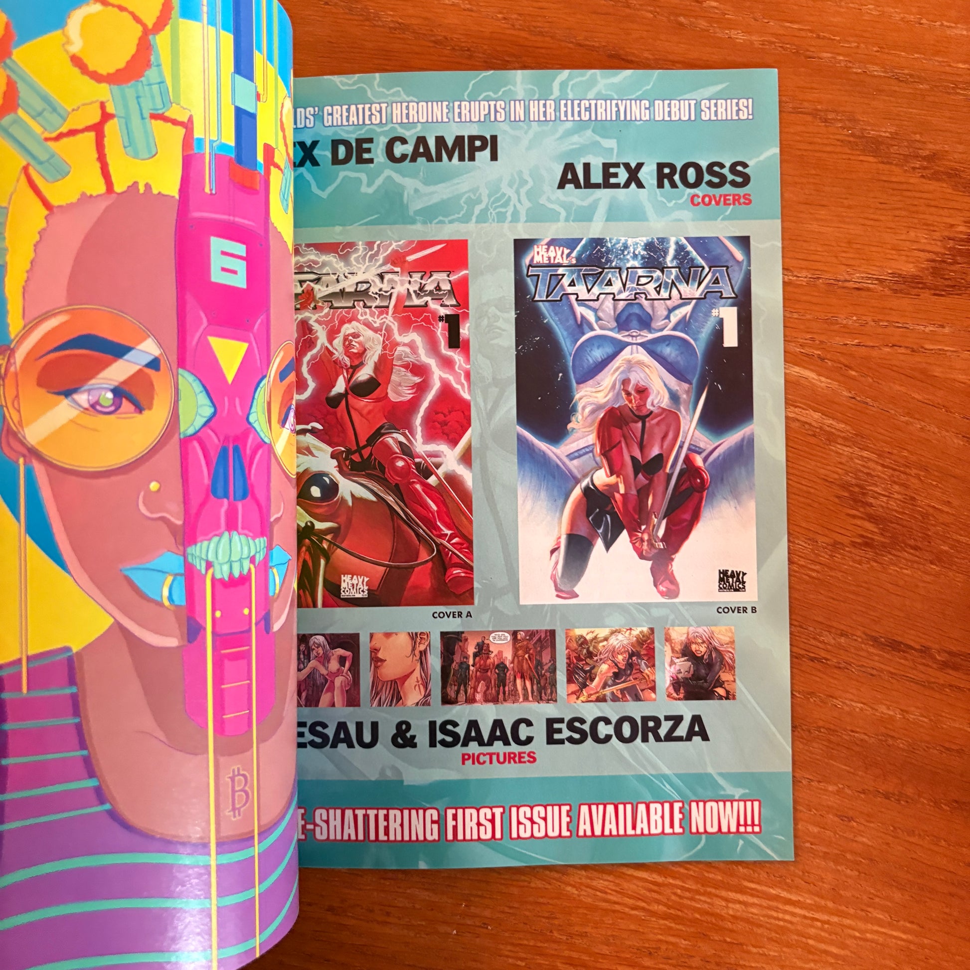 "Neon Wasteland": By Rob Shields, this story depicts a future where technology and humanity have merged. It includes AR elements that bring the visuals to life through the Heavy Metal AR app .