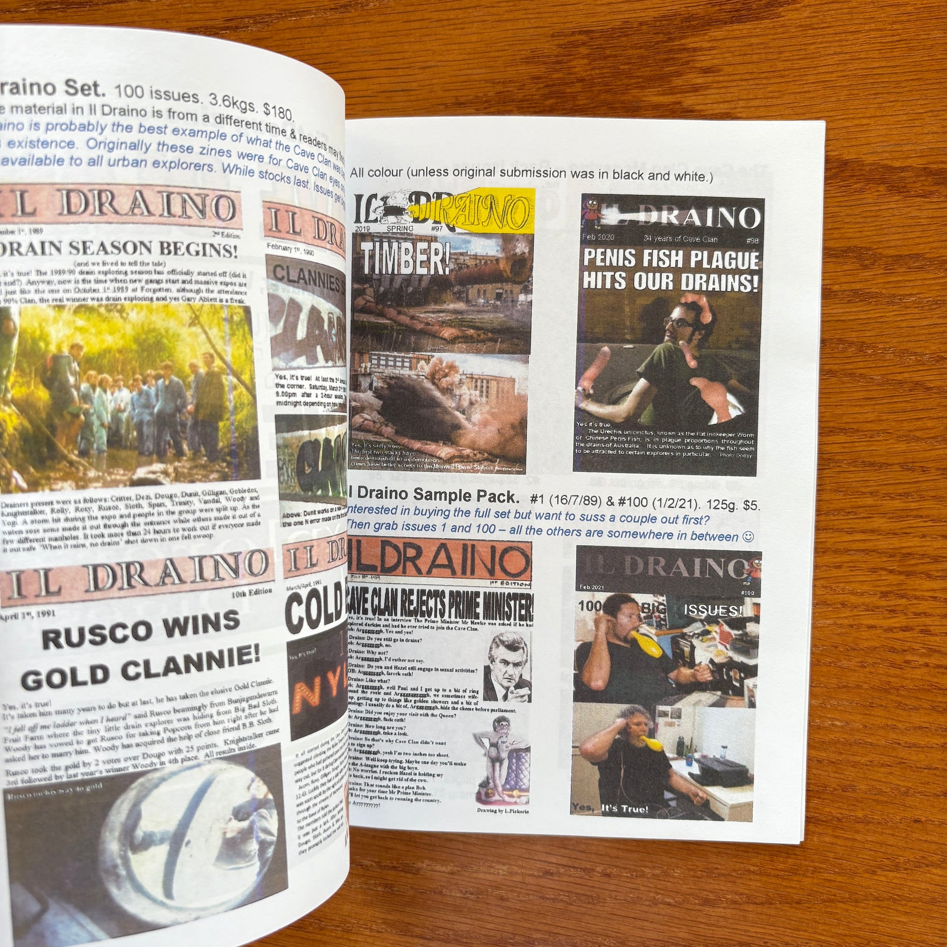 Il Draino is the official zine of the Cave Clan, an Australian urban exploration group founded in 1986 by Doug (also known as Dougo), Sloth, and Woody. Established in 1989, Il Draino began as a satirical publication but evolved into a comprehensive chronicle of the group's underground activities, featuring valuable information and humor. By 2018, the zine had reached 95 issues, documenting the Cave Clan's explorations and culture.