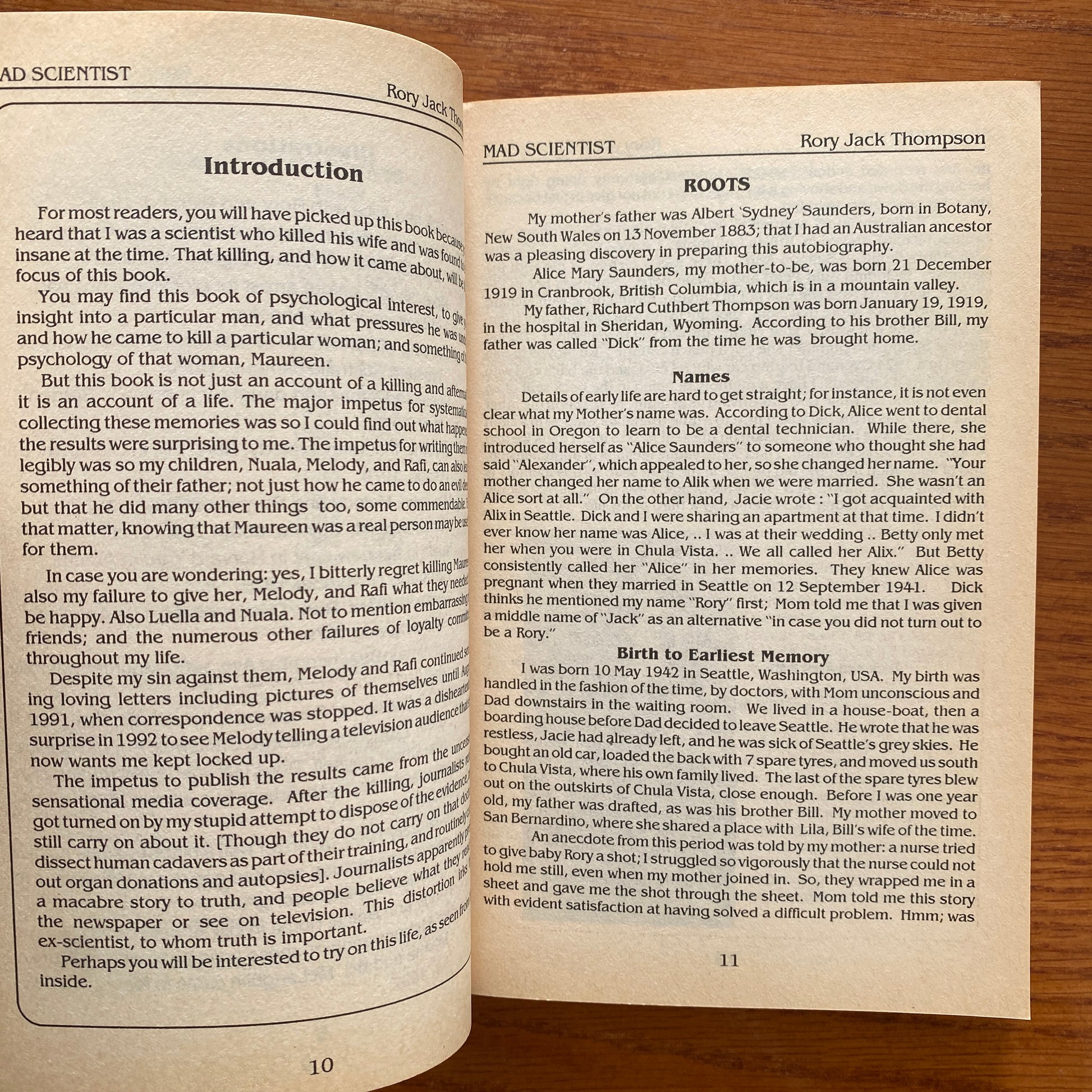 In September 1983, he was charged for murdering his wife, Maureen Thompson, in their Hobart, Tasmania home and after dismembering her body, he dumped the remains down a toilet. He was not sentenced to serve in prison on the grounds of insanity, but instead, was detained in a hospital attached to the Risdon Prison Complex for an unspecified period of time. Thompson wrote an autobiography in 1993 providing stories of his early life and the subsequent murder.