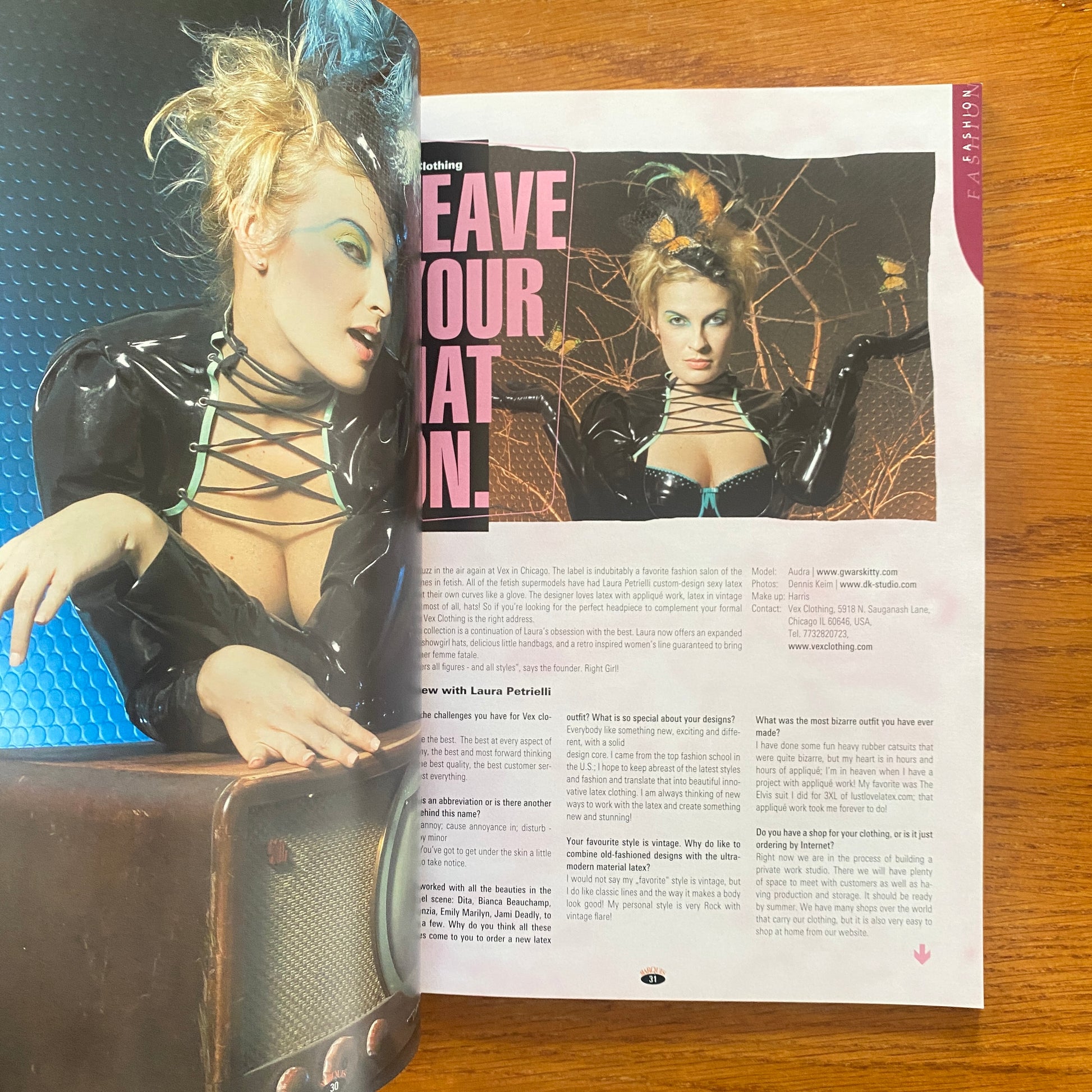 It was published every six months to quarterly and was primarily aimed at lovers of fetish, latex and fashion. The core themes were photography, models, books, films, fashion, art and lifestyle.