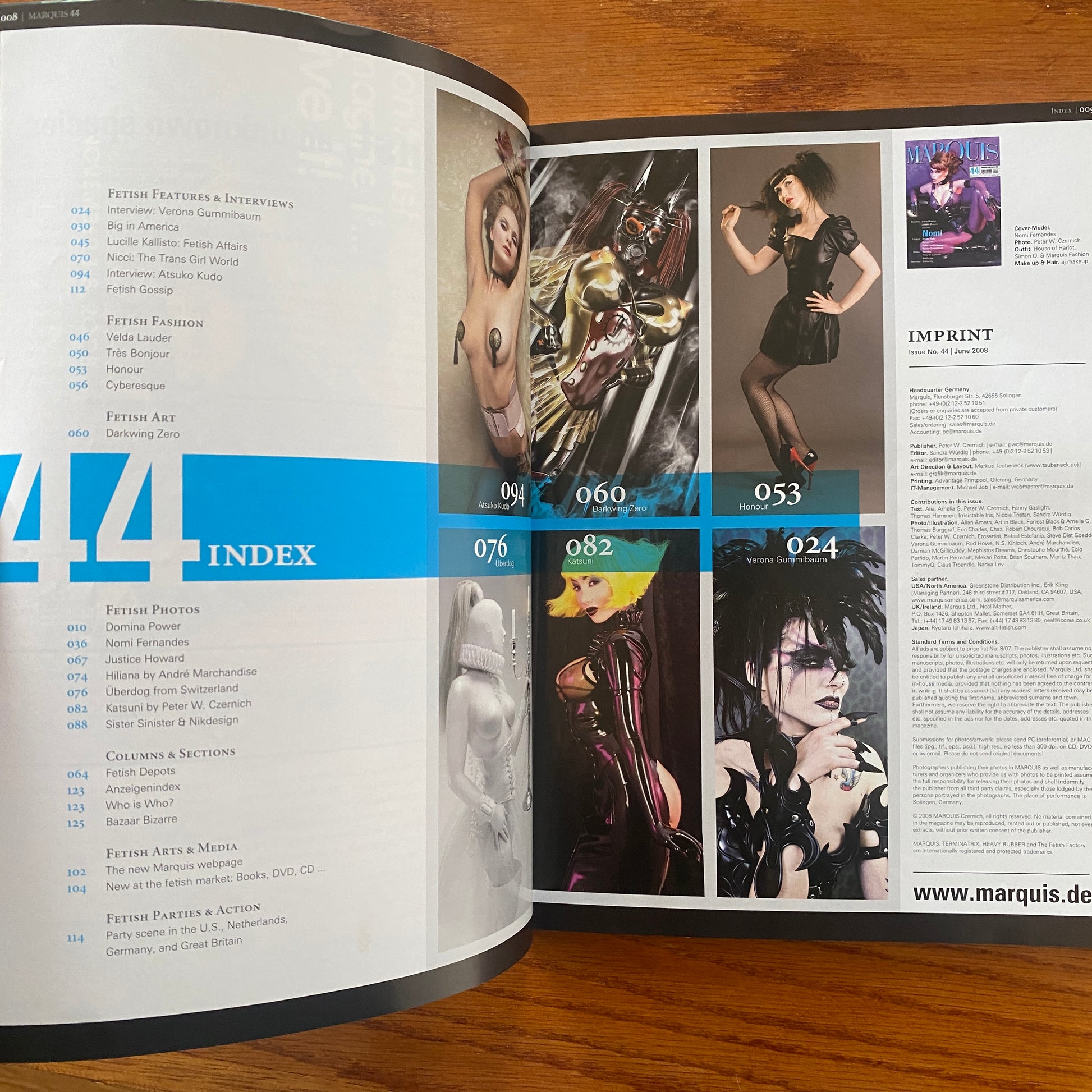 Marquis is a German and English language fetish magazine that was created by Peter W. Czernich and has been in production since August 1994. The Marquis was thus the official successor to the magazine "O". It was published every six months to quarterly and was primarily aimed at lovers of fetish, latex and fashion. The core themes were photography, models, books, films, fashion, art and lifestyle.