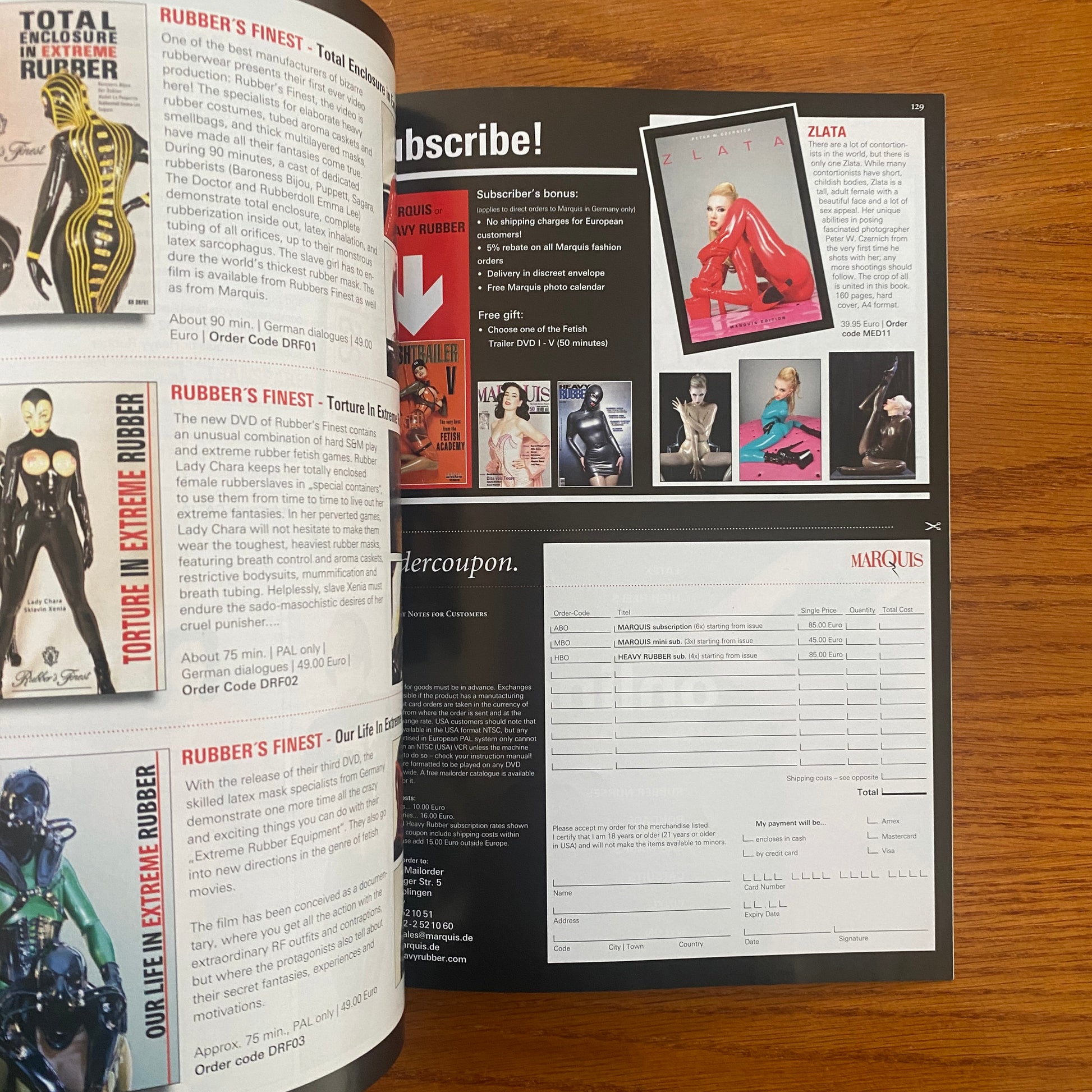 It was published every six months to quarterly and was primarily aimed at lovers of fetish, latex and fashion. The core themes were photography, models, books, films, fashion, art and lifestyle.