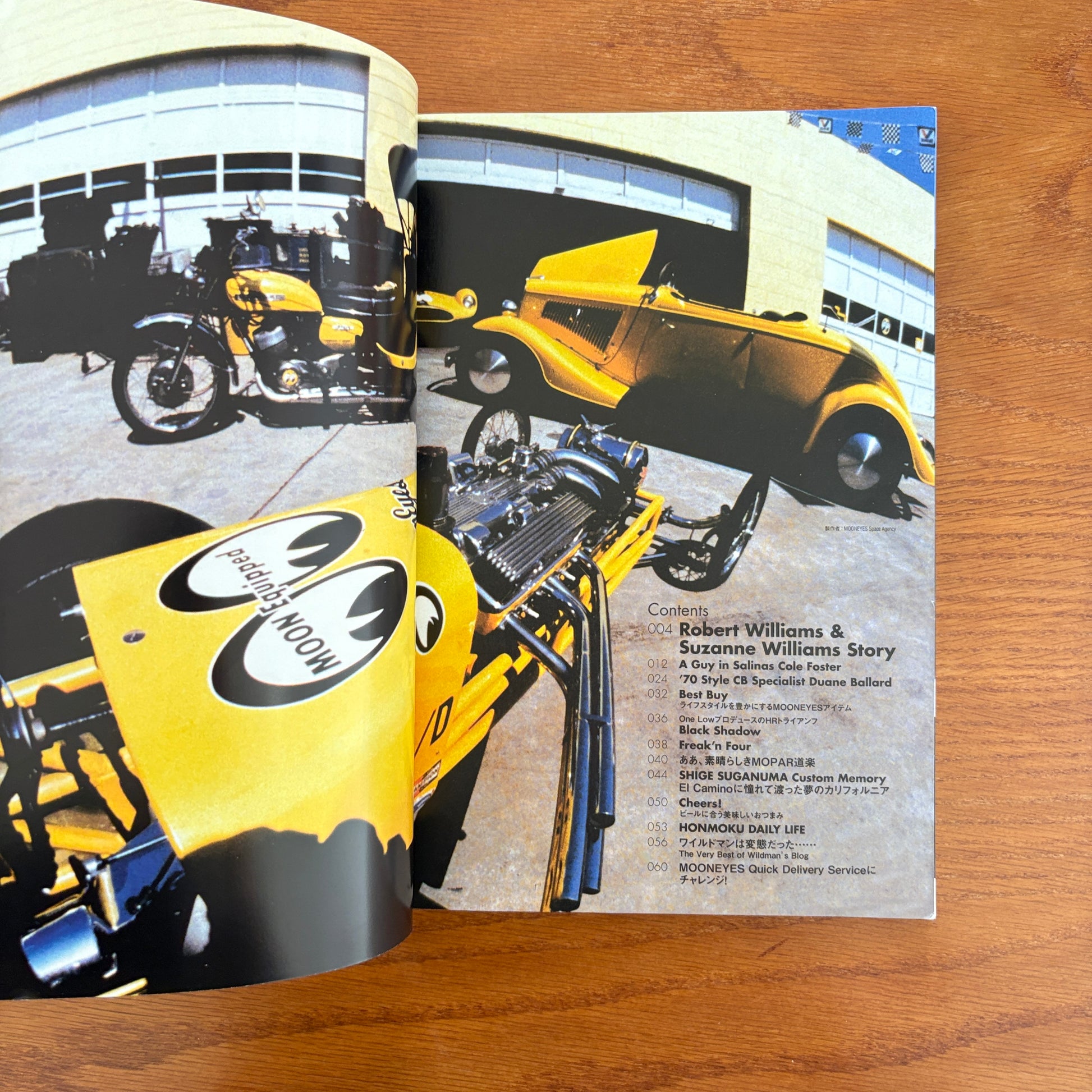 This 2010 Spring/Summer volume captures MOONEYES at a moment where Japanese hot-rod culture, lowbrow art, and SoCal nostalgia were fully blending into one visual language. The issue features custom builds ranging from vintage Triumphs and Hondas to classic hot-rod iron, all photographed with that bright, sunny MOONEYES aesthetic. It also spotlights artists like Robert and Suzanne Williams, tying the magazine into the broader world of lowbrow and Kustom Kulture art that has long influenced the brand.
