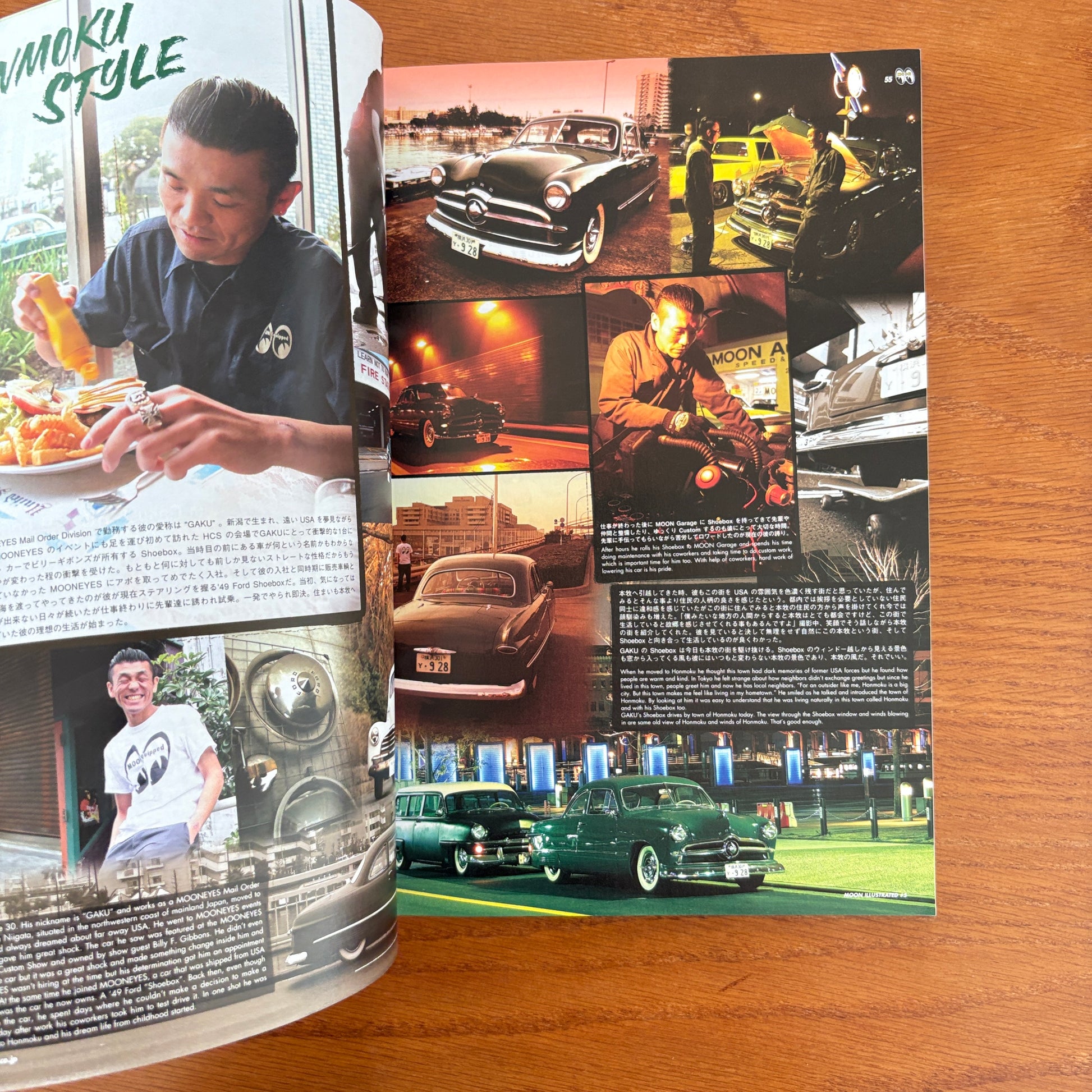 Alongside the machines, Vol. 5 leans into lifestyle—garage culture, snapshots from MOON Café, and photo-essays that reflect the scrappy DIY energy of early 2010s custom scenes. And as always, it doubles as a full catalogue of MOONEYES gear, clothing, accessories, and parts from that year. It’s a sunny, colourful, retro-leaning time capsule of MOONEYES culture at the beginning of the decade.