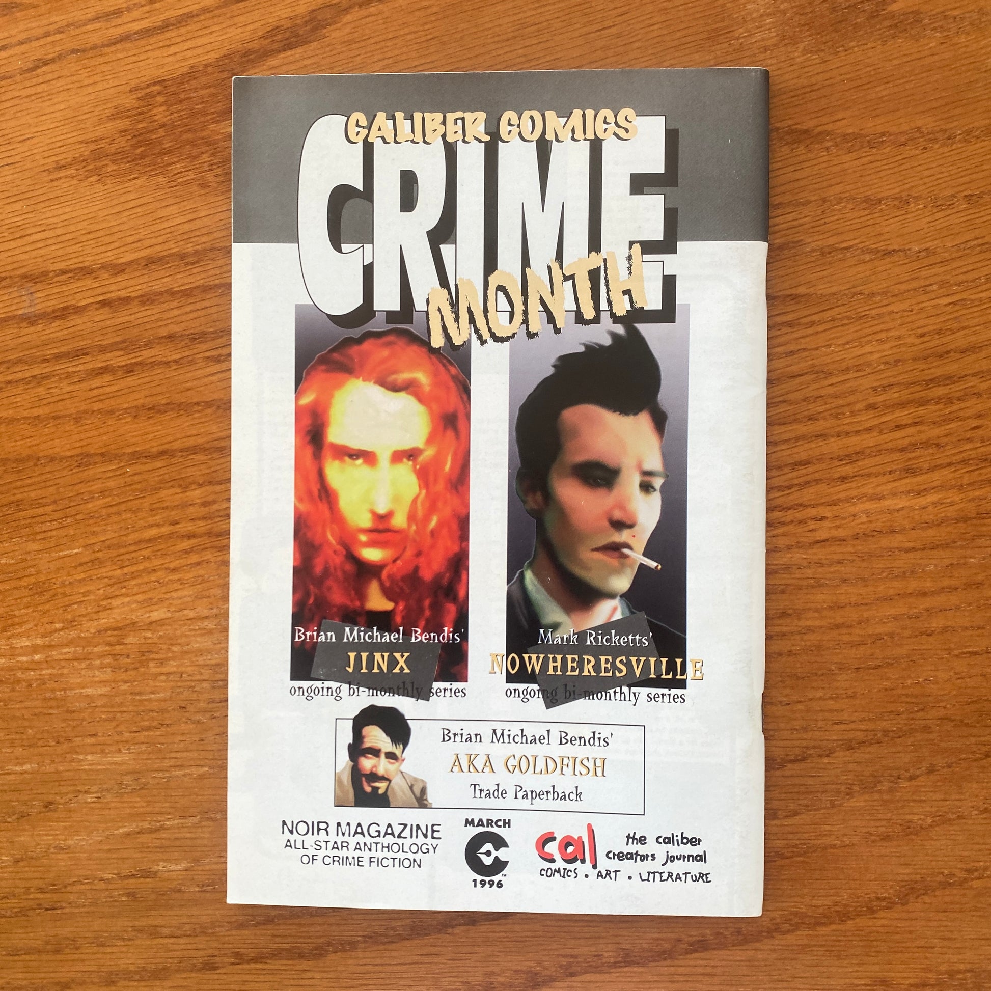 Red cover, woman's face. Regular cover by Mark Laliberte. Edited by Joe Pruett. Stories by Aldyth Beltane, Kevin ONeill, Brian Michael Bendis, Jaime Hernandez, Nat Gertler, Alexander Grecian, Phil Hester, Steve Darnall, Brian Bolland, Zander Cannon, Tom Gianni, Mike Maddux, Jeff Nicholson, Paul Erickson, Paul Fricke, Mike Perkins, Jason Whitley, and Robert Lewis. Calibers long-running anthology features many rising comics stars of the 90s. A Jinx story by Bendis; a Jaime Hernandez sketchbook; an early story by ONeill (League of Extraordinary Gentlemen). 64 pages, B&W. Mature readers.