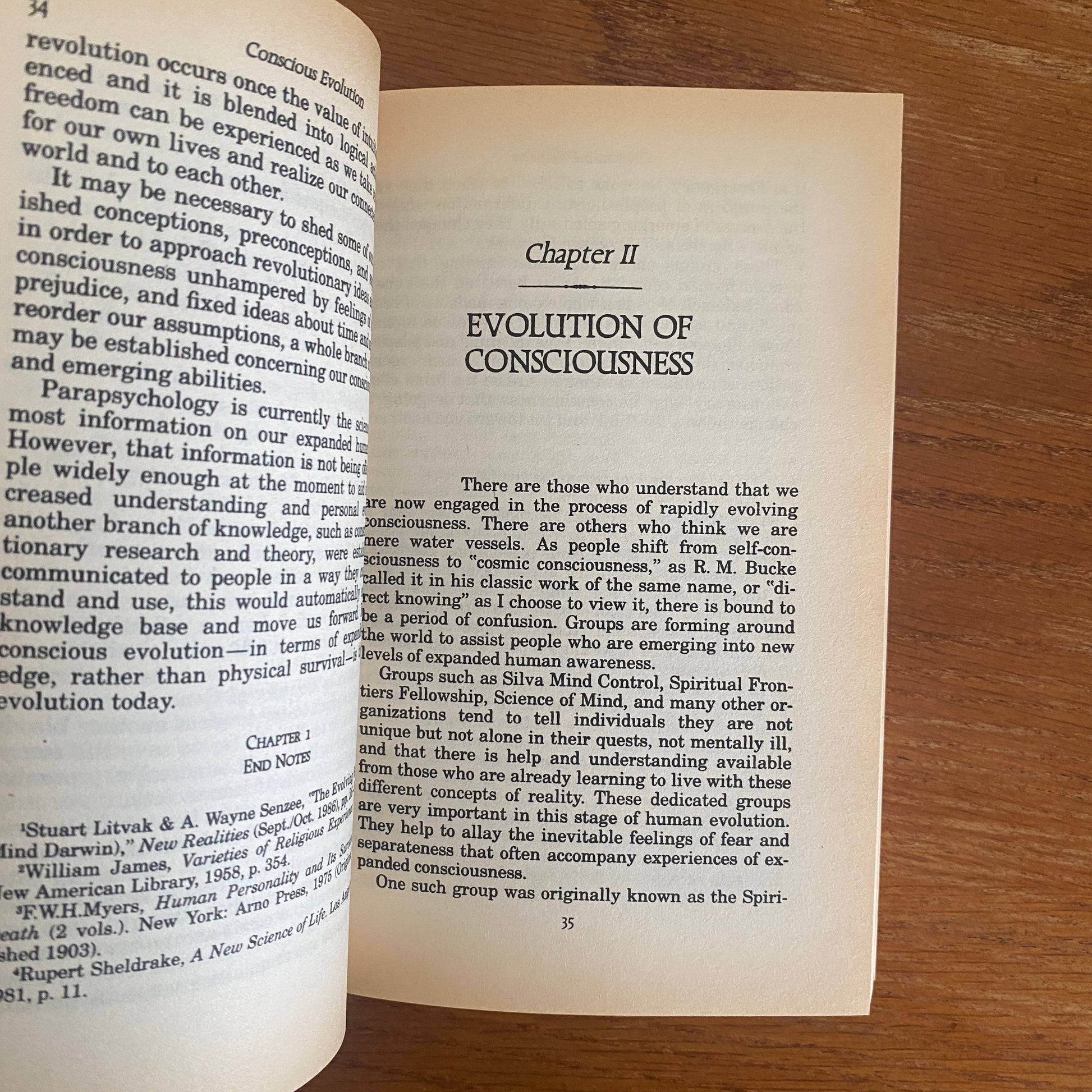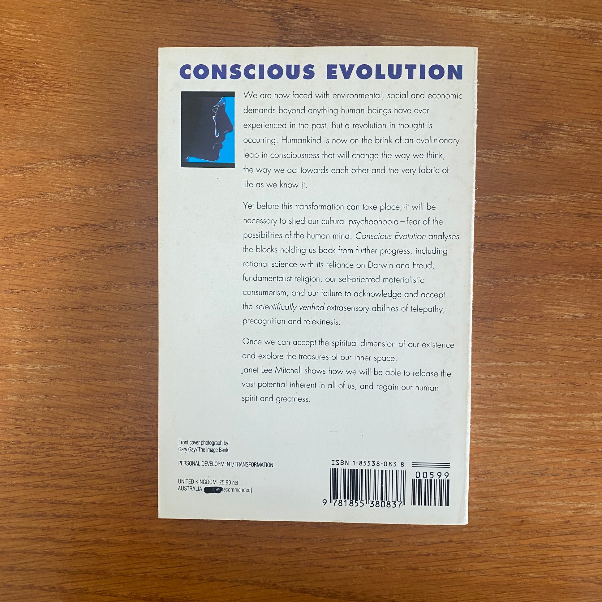 Janet Lee Mitchell who held a doctorate in Experimental Cognition and began her research into paranormal or parapsychology in the mid-1960s. In this work entitled "Conscious Evolution" (as published in 1989), the author explains in details of the "blocks" that are holding us back from further progress along the conscious evolution, including Darwin and Freud theories, religions, materialistic consumerism, and our failure to acknowledge "scientifically verified" extraordinary abilities.
