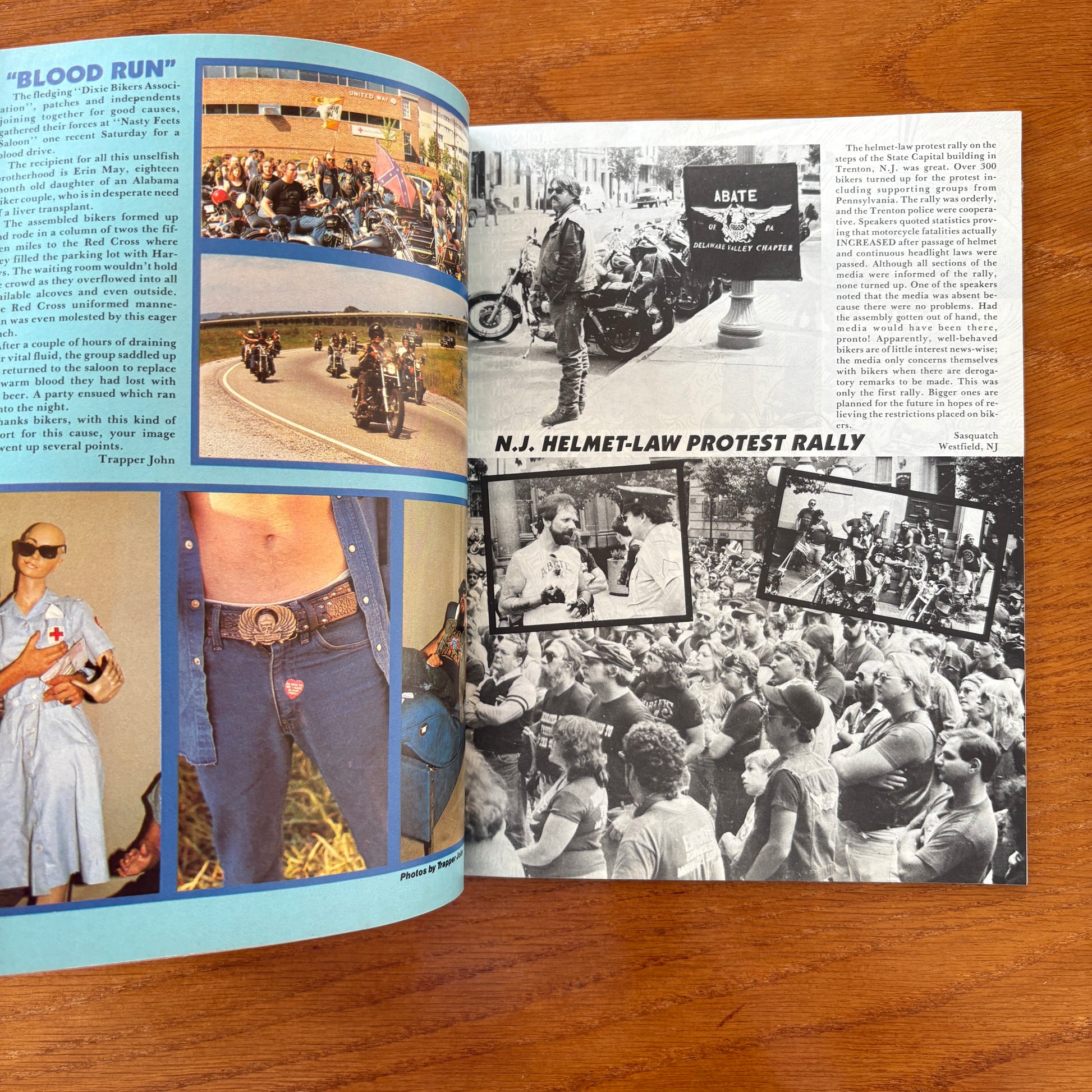 The content dives into several key features including “Dangerous Dave’s Protest Run,” a rallying moment of resistance, and “Snakes Hawg Shop,” which gets the full Outlaw Focus treatment. The parties section is packed with highlights like the Bashful Bandit bar scene, the Blood Run, a Smokey Mountains biker wedding, and a New Jersey helmet-law protest rally. There’s also a patriotic nod in the dedicated spread for Vietnam vets.