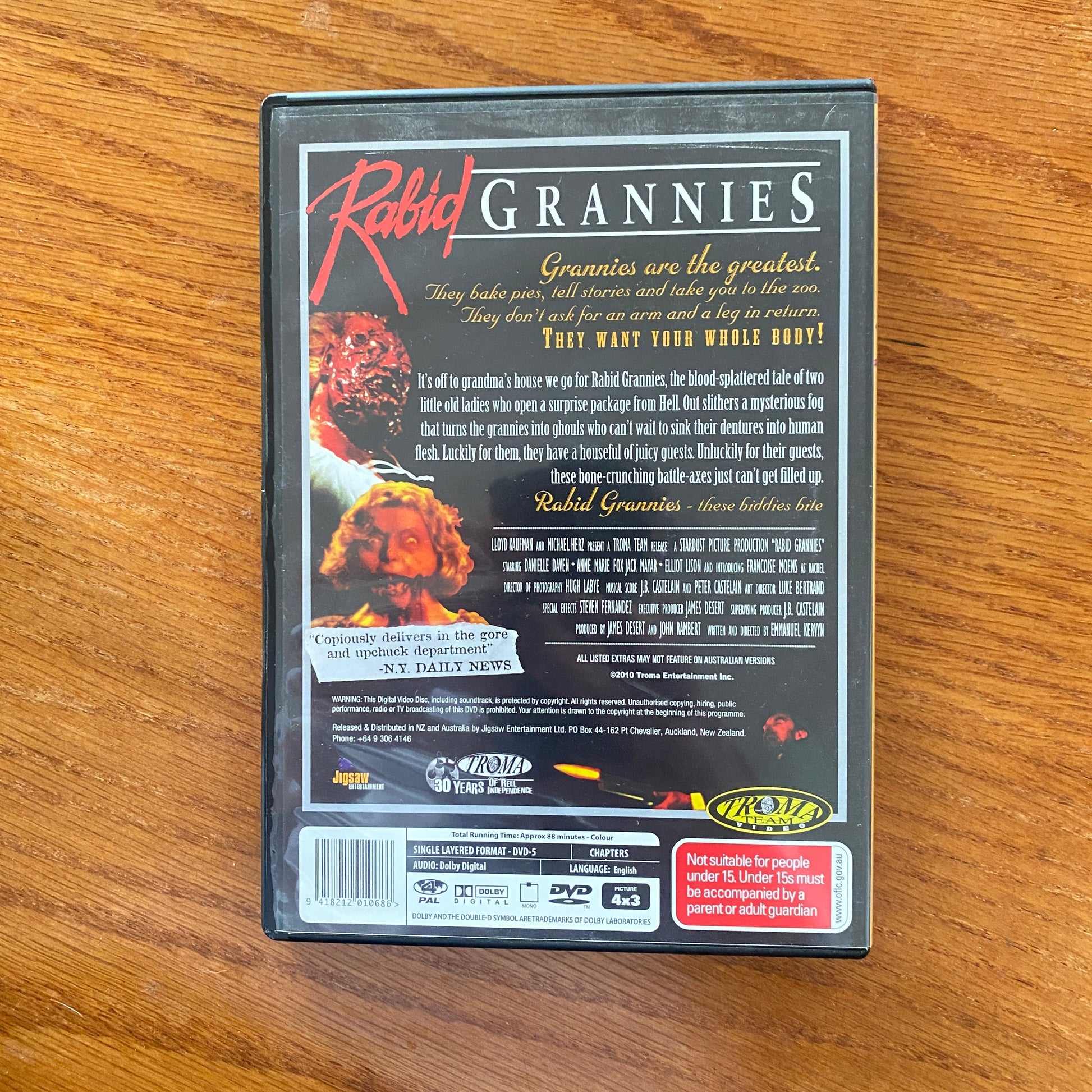 Out slithers a mysterious fog that turns the grannies into ghouls who can’t wait to sink their dentures into human flesh. Luckily for them, they have a houseful of juicy guests. Unluckily for their guests, these bone-crunching battle-axes just can’t get filled up.
