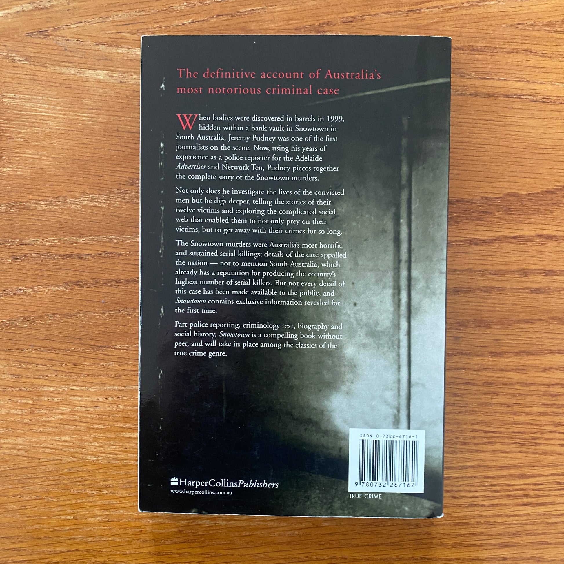 Part police reporting, criminology text, biography and social history, Snowtown is a compelling book without peer, and will take its place among the classics of the true crime genre.