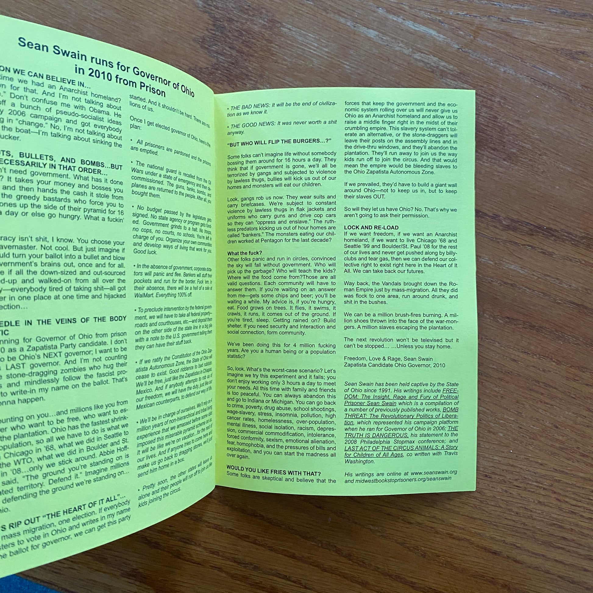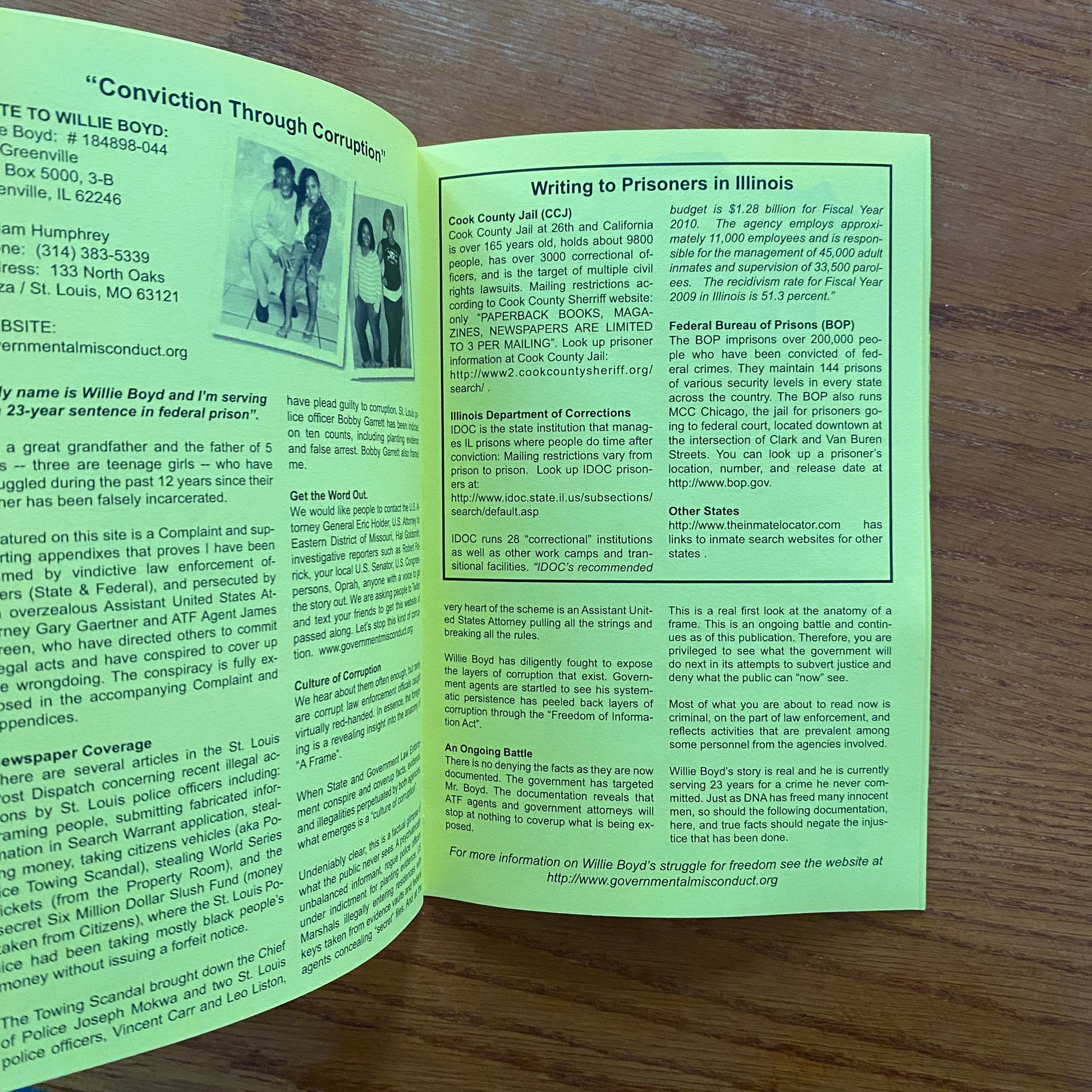 Features info on book programs and corresponding with USA inmates.
