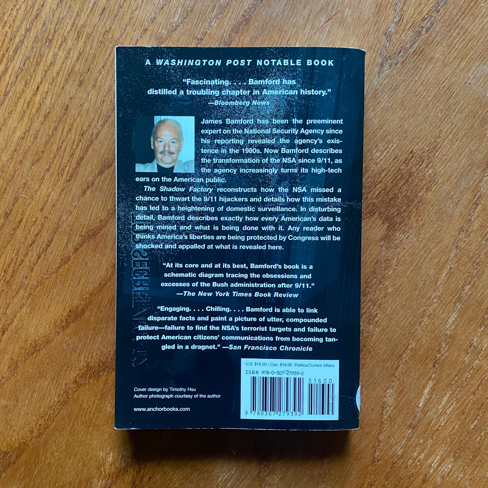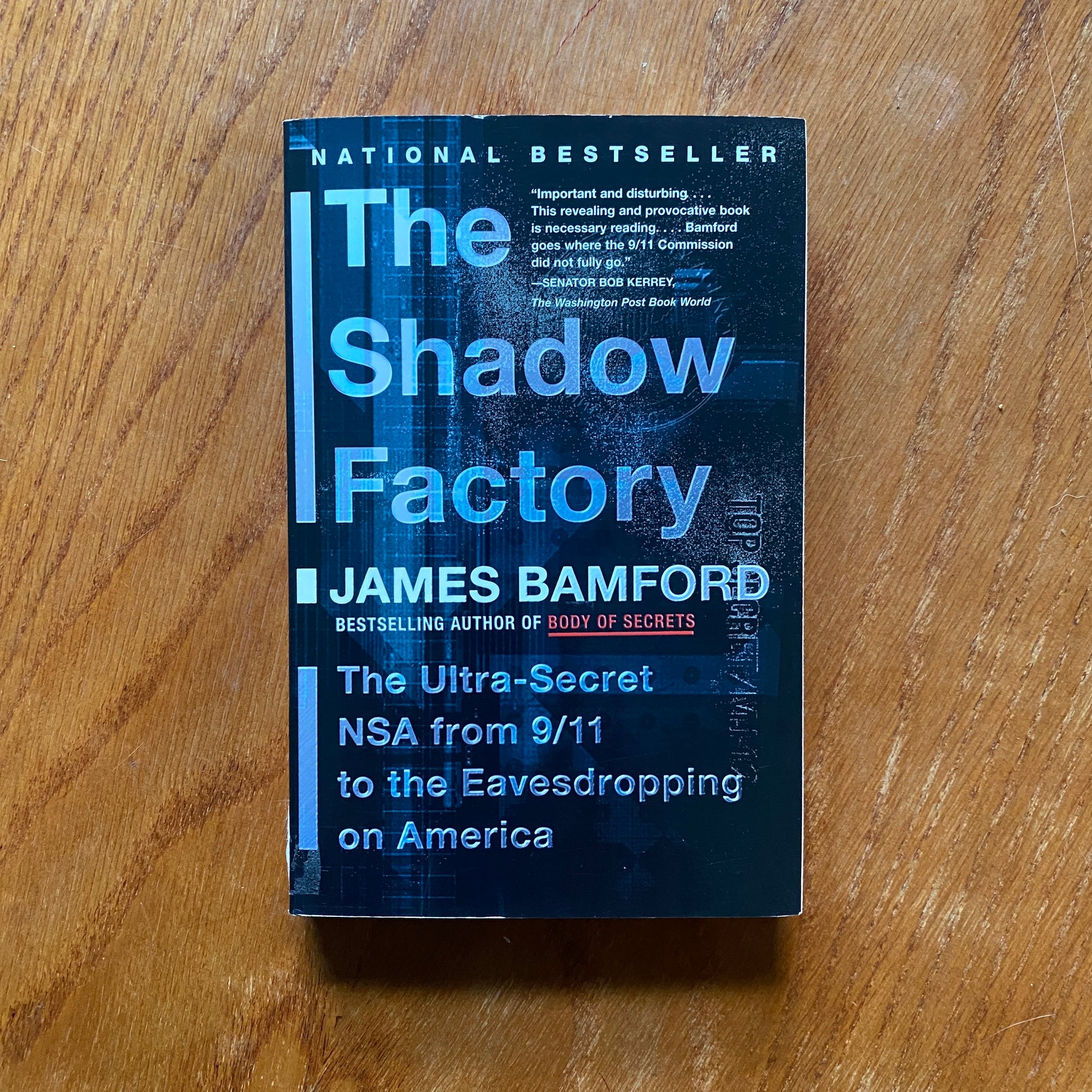 The Shadow Factory reconstructs how the NSA missed a chance to thwart the 9/11 hijackers and details how this mistake has led to a heightening of domestic surveillance. In disturbing detail, Bamford describes exactly how every American’s data is being mined and what is being done with it. Any reader who thinks America’s liberties are being protected by Congress will be shocked and appalled at what is revealed here.