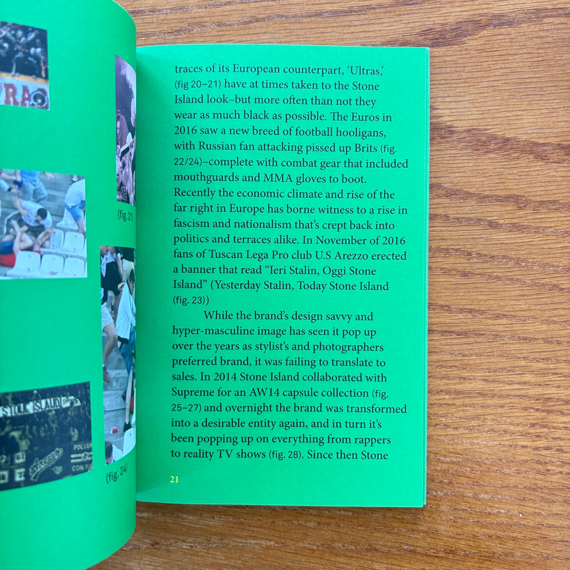 This zine is an exploration of Stone Island’s relationship with the football casuals movement and the rise and fall of football hooliganism in Europe. The link saw the brand fall out of favour with the fashion industry, become re-appropriated, and take on a whole new identity. Snowflake documents Stone island’s adoption by football subcultures in the early ‘90s to its current resurgence and embrace by rappers and celebs. It’s an interesting idea that in the modern age of marketing, a carefully positioned brand can have its perception completely altered by the people who choose to adopt it.
