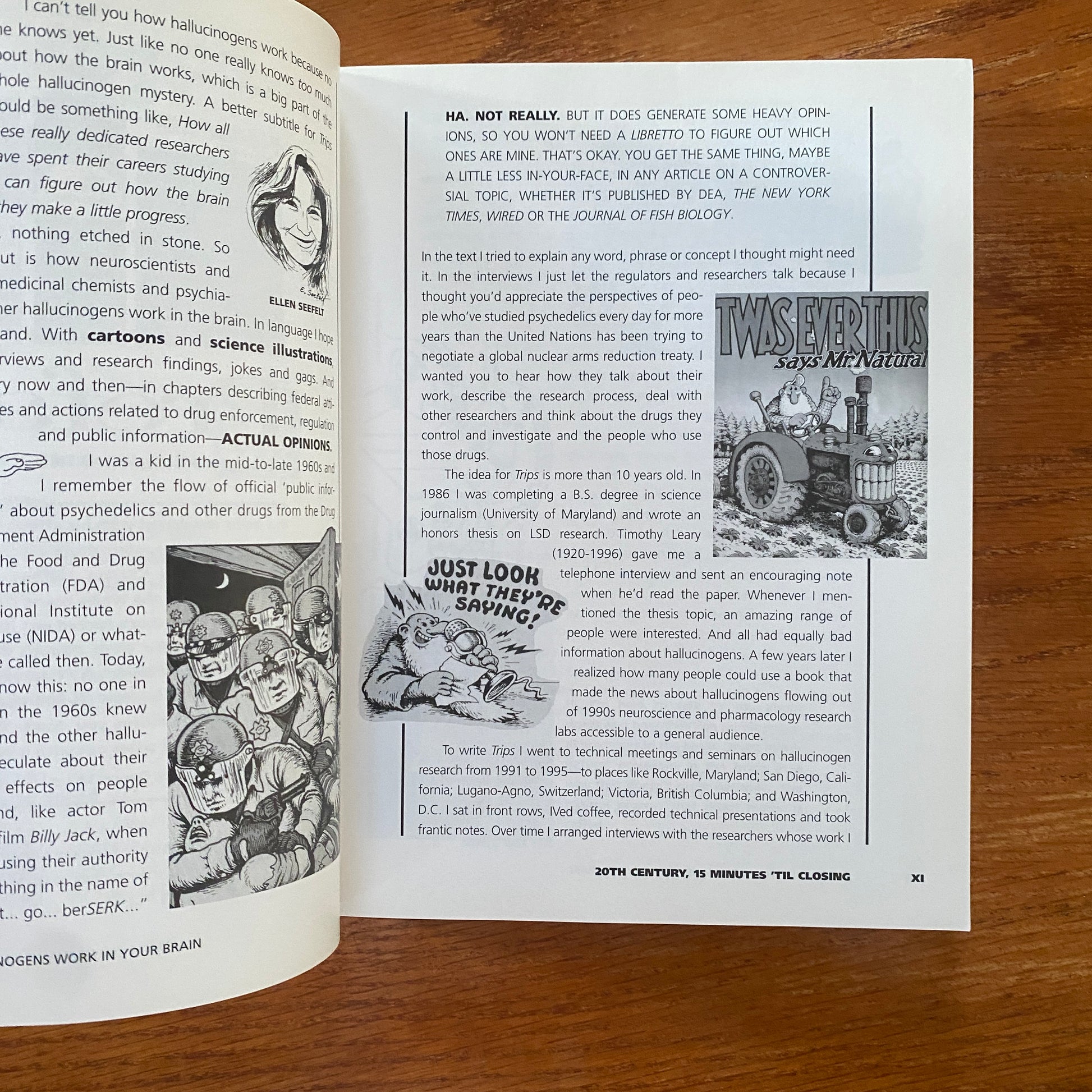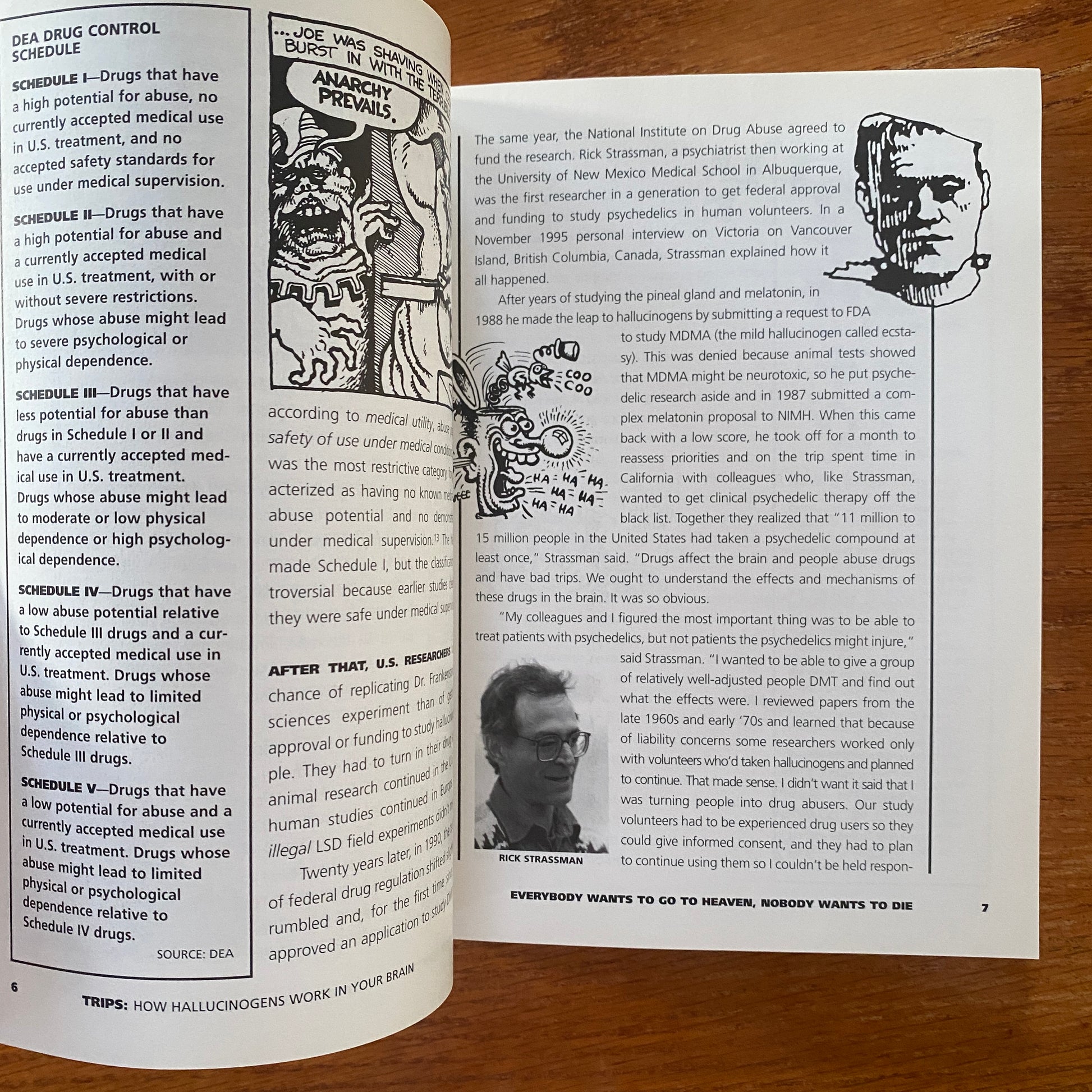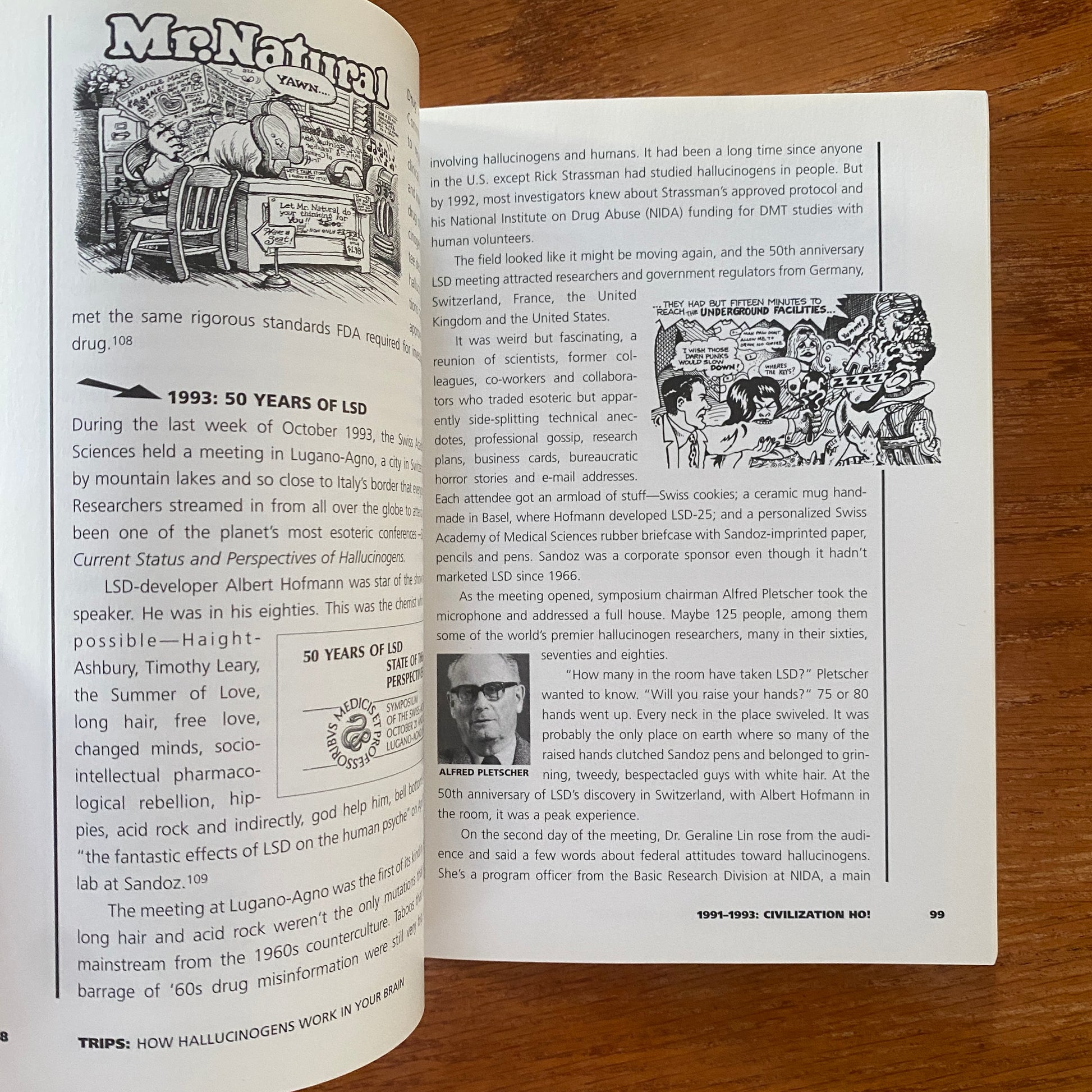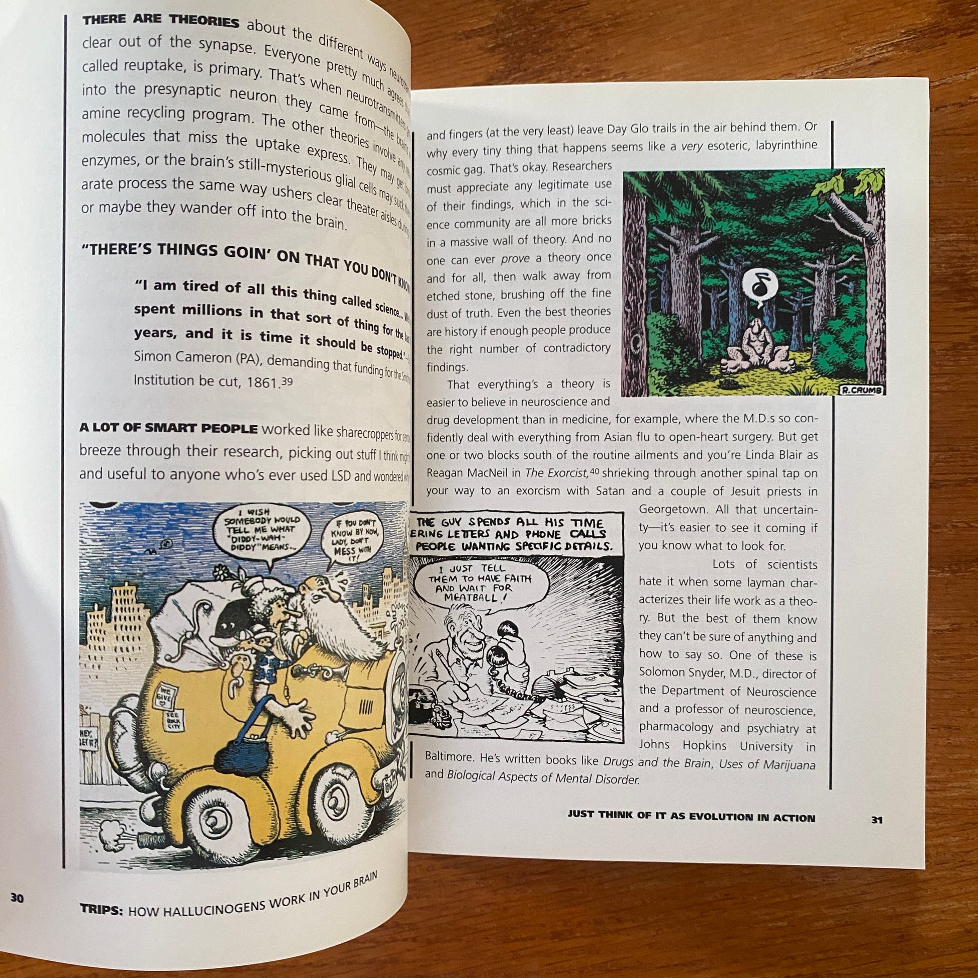 Trips shows, using colour illustrations (Many by R.Crumb), the latest research, and bleeding-edge cultural analogies, how the still-mysterious hallucinogens may work in the still-mysterious brain. Written in language a general audience can understand, the book's tone is light and irreverent, yet at the same time deals with the drug culture in a serious way.