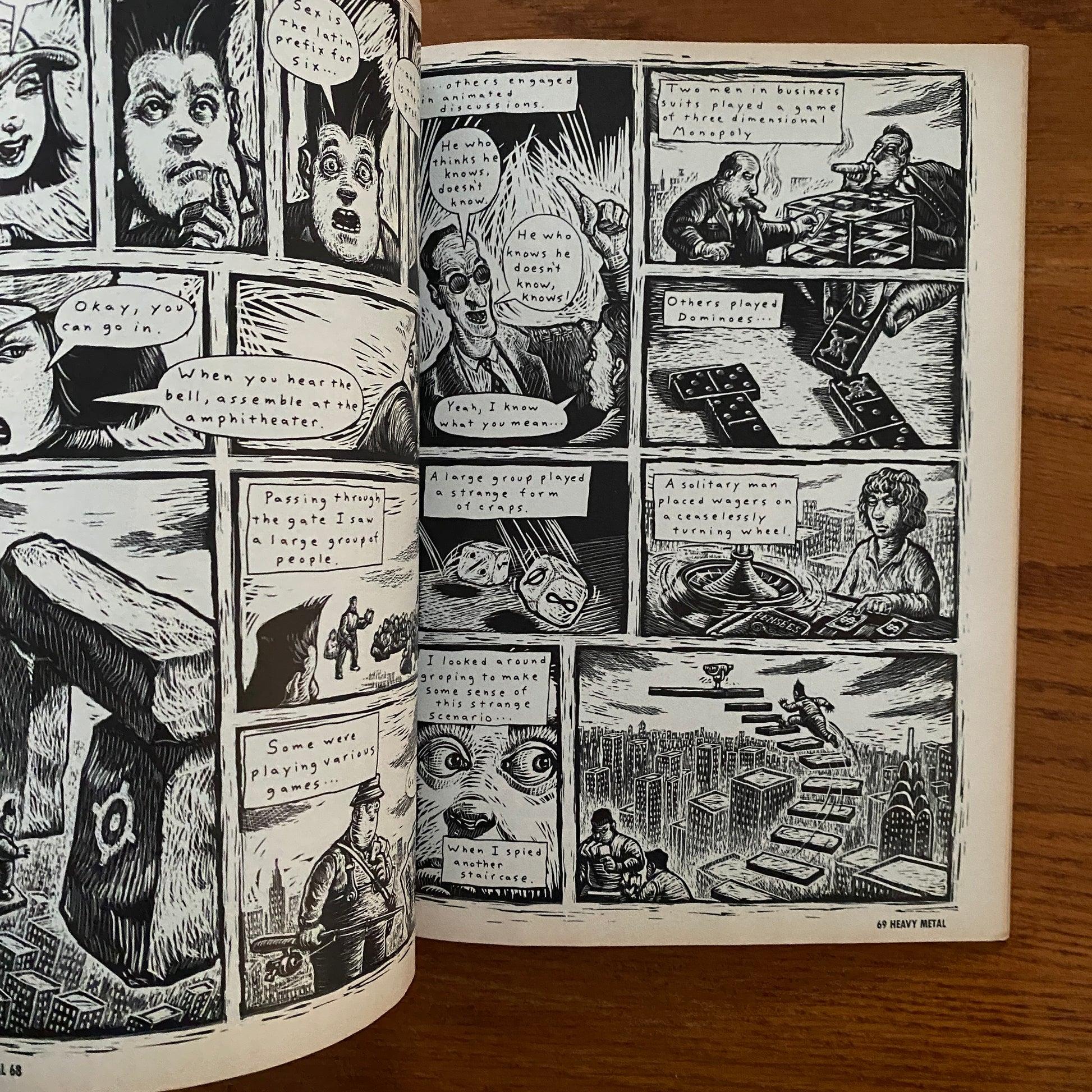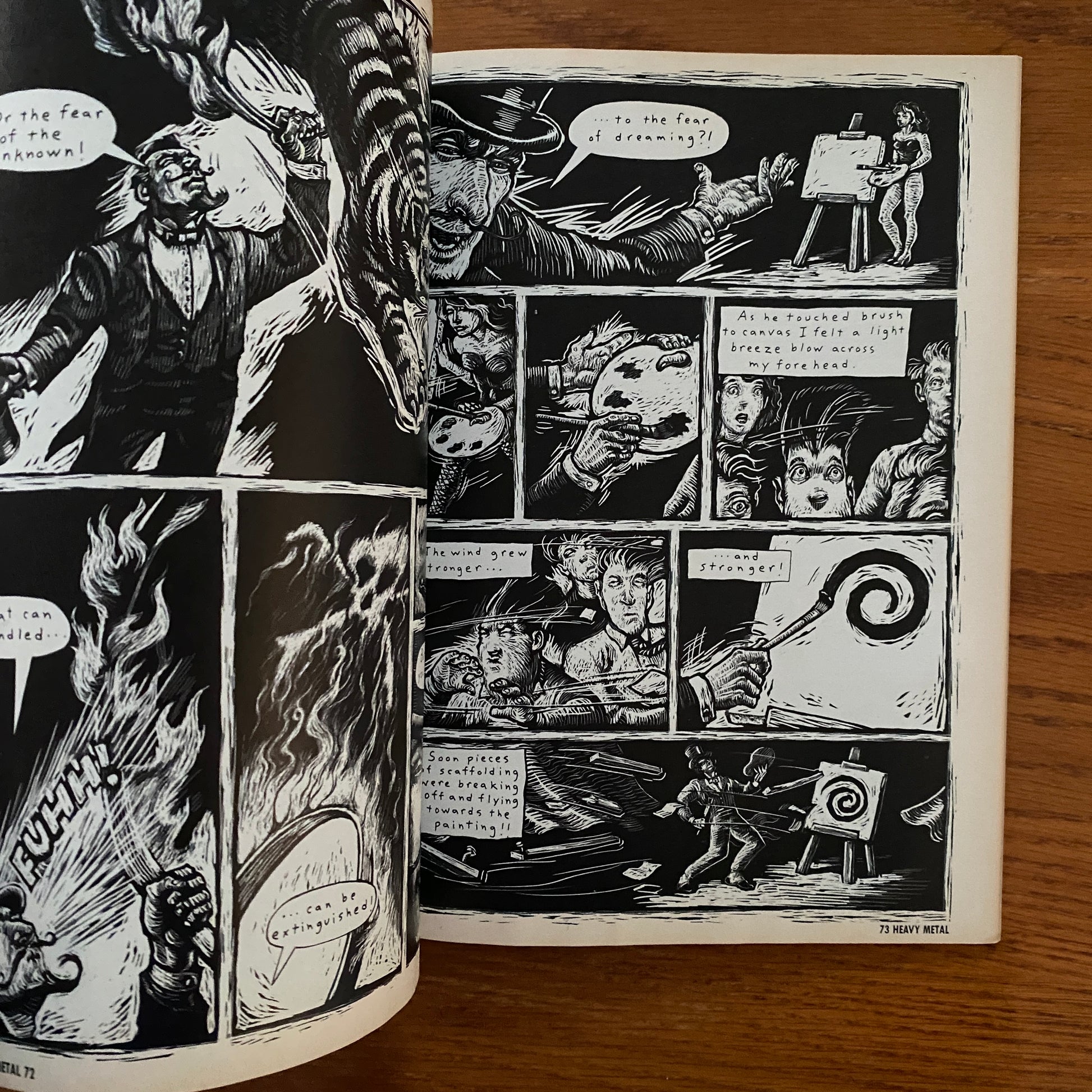 Heavy Metal is an American science fiction and fantasy comics magazine, published beginning in 1977. The magazine is known primarily for its blend of dark fantasy/science fiction, erotica and steampunk comics. Unlike the traditional American comic books of that time bound by the restrictive Comics Code Authority, Heavy Metal featured explicit content.