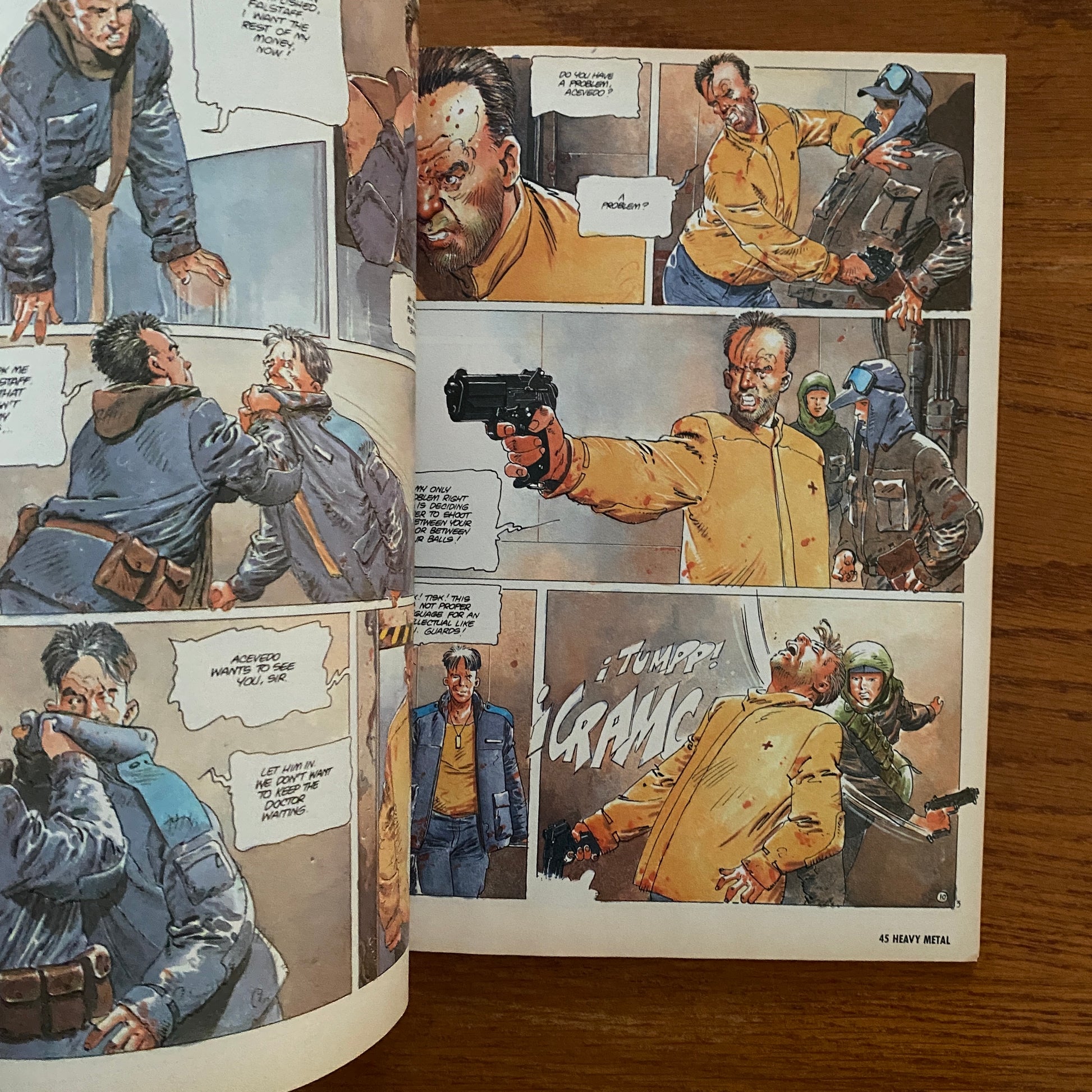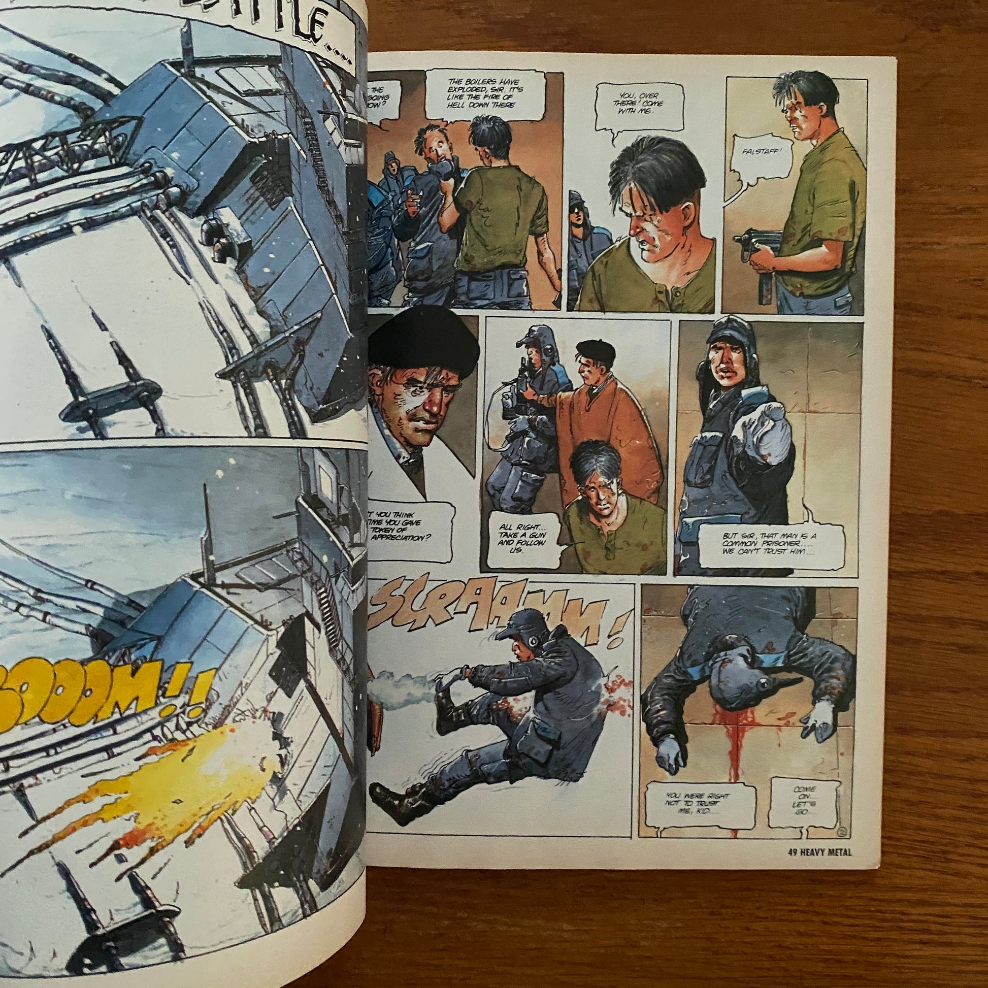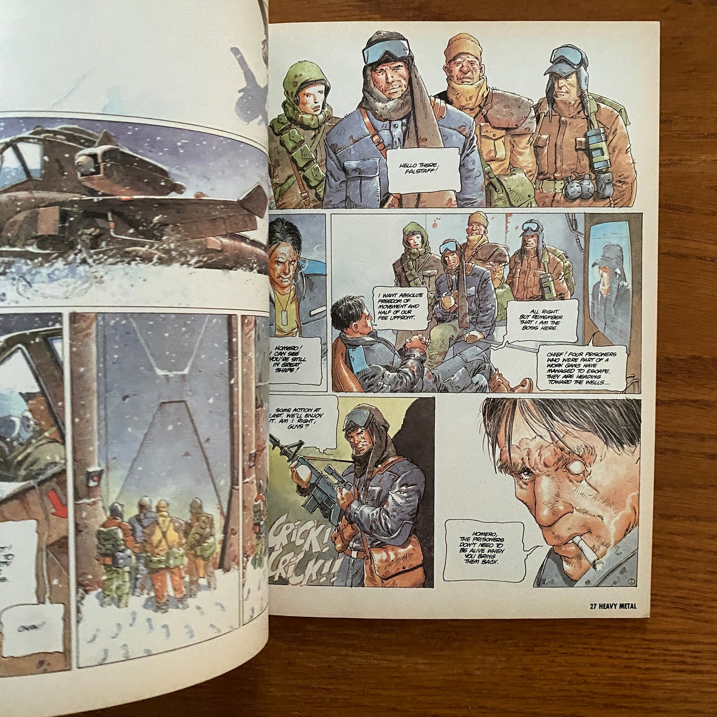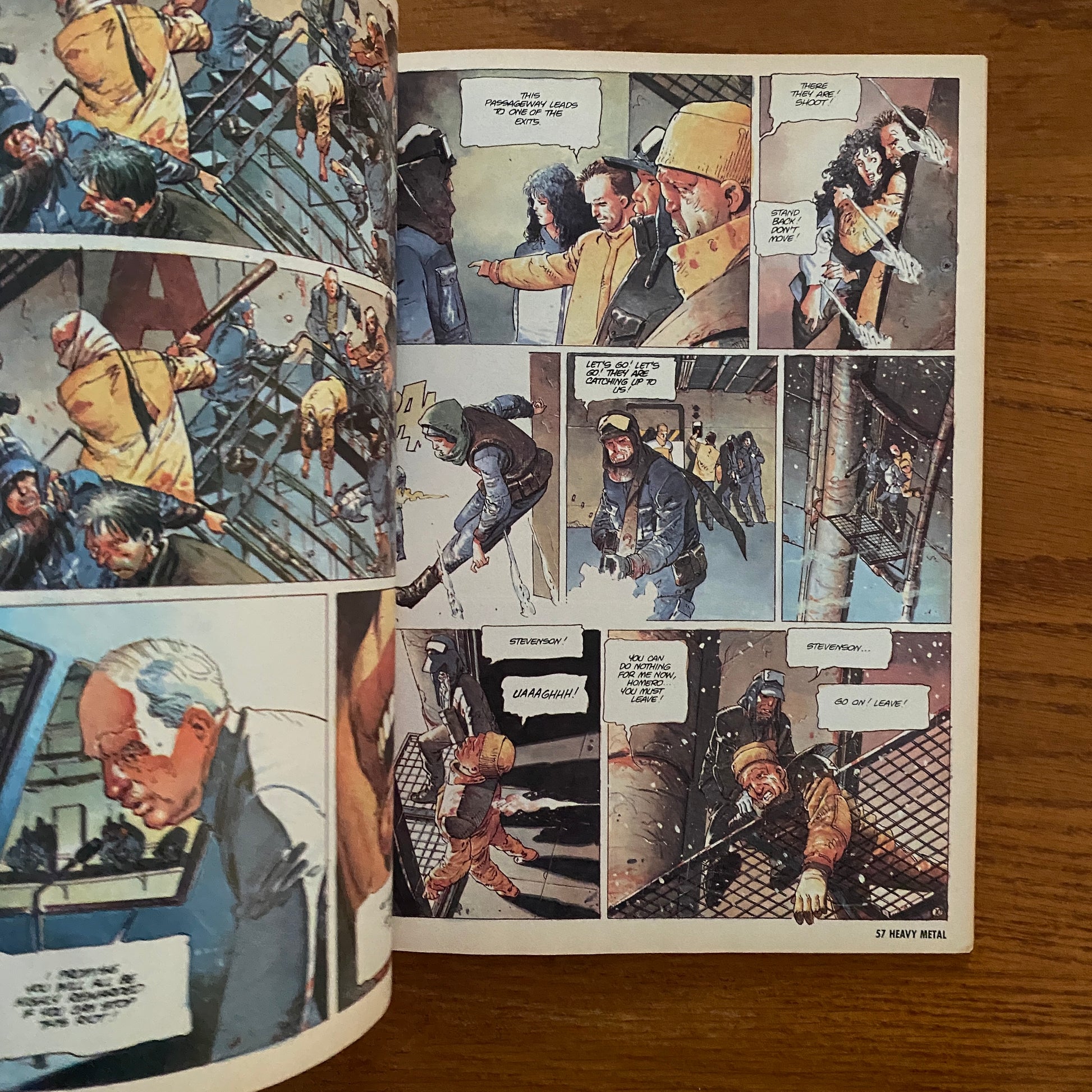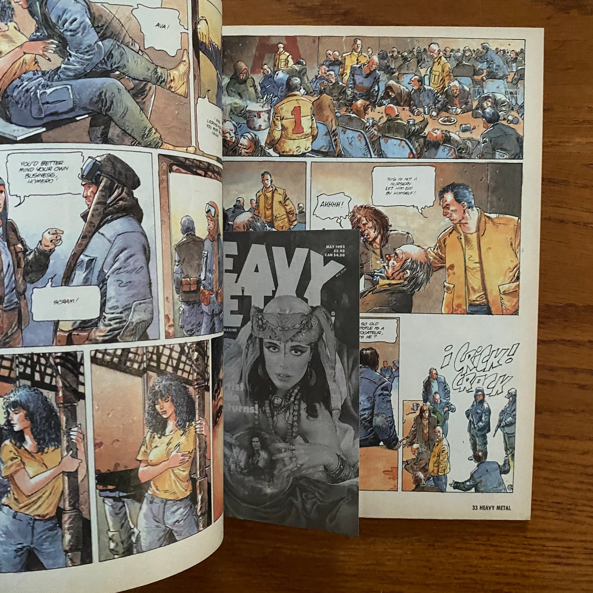 The magazine started out primarily as a licensed translation of the French science-fantasy magazine Métal hurlant, including work by Enki Bilal, Philippe Caza, Guido Crepax, Philippe Druillet, Jean-Claude Forest, Jean Giraud (a.k.a. Moebius), Chantal Montellier, and Milo Manara. As cartoonist/publisher Kevin Eastman saw it, Heavy Metal published European art which had not been previously seen in the United States, as well as demonstrating an underground comix sensibility that nonetheless "wasn't as harsh or extreme as some of the underground comix – but . . . definitely intended for an older readership".