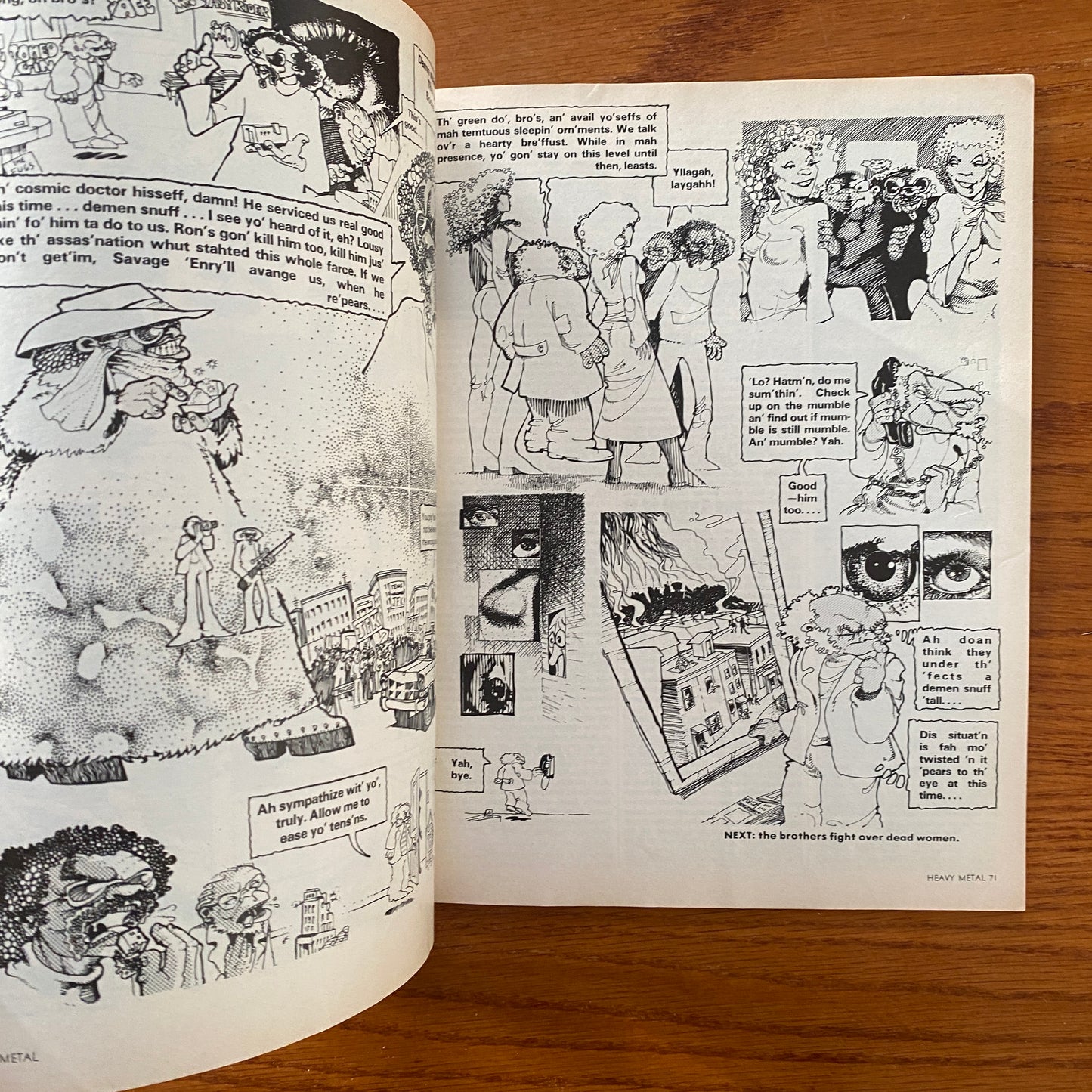 Heavy Metal is an American science fiction and fantasy comics magazine, published beginning in 1977. The magazine is known primarily for its blend of dark fantasy/science fiction, erotica and steampunk comics. Unlike the traditional American comic books of that time bound by the restrictive Comics Code Authority, Heavy Metal featured explicit content.
