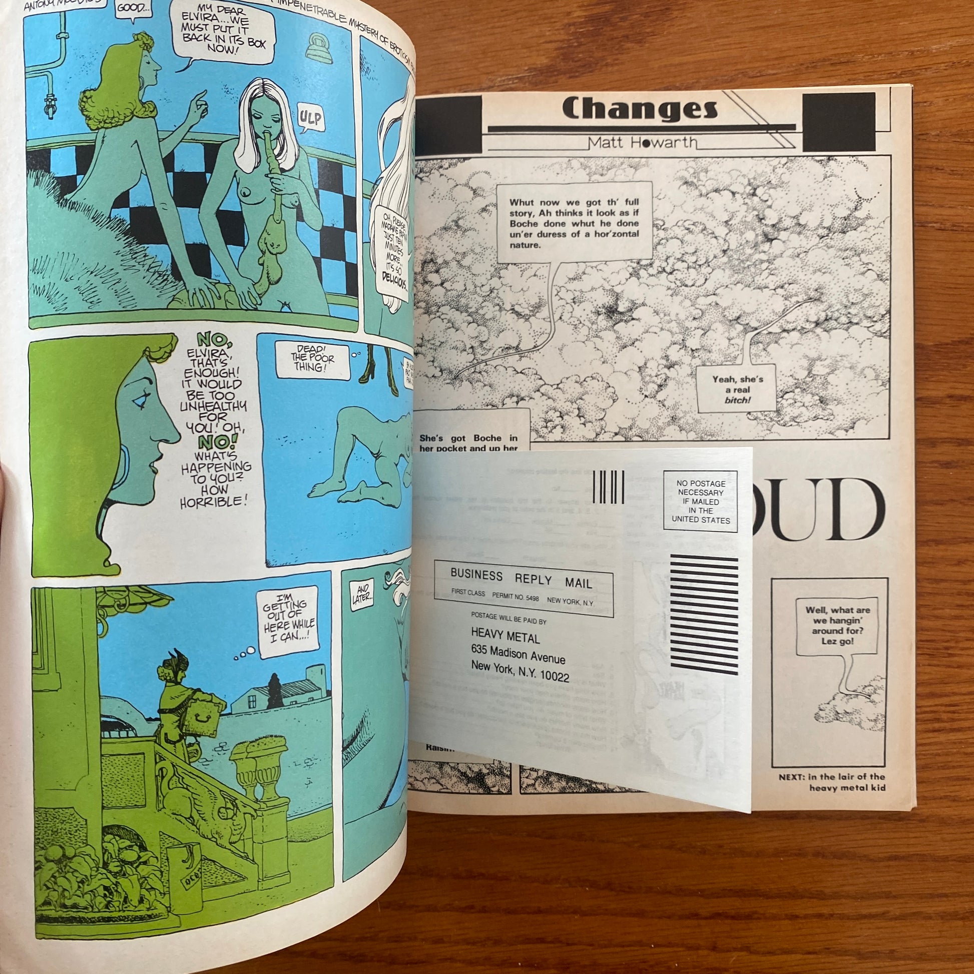 Heavy Metal is an American science fiction and fantasy comics magazine, published beginning in 1977. The magazine is known primarily for its blend of dark fantasy/science fiction, erotica and steampunk comics. Unlike the traditional American comic books of that time bound by the restrictive Comics Code Authority, Heavy Metal featured explicit content.