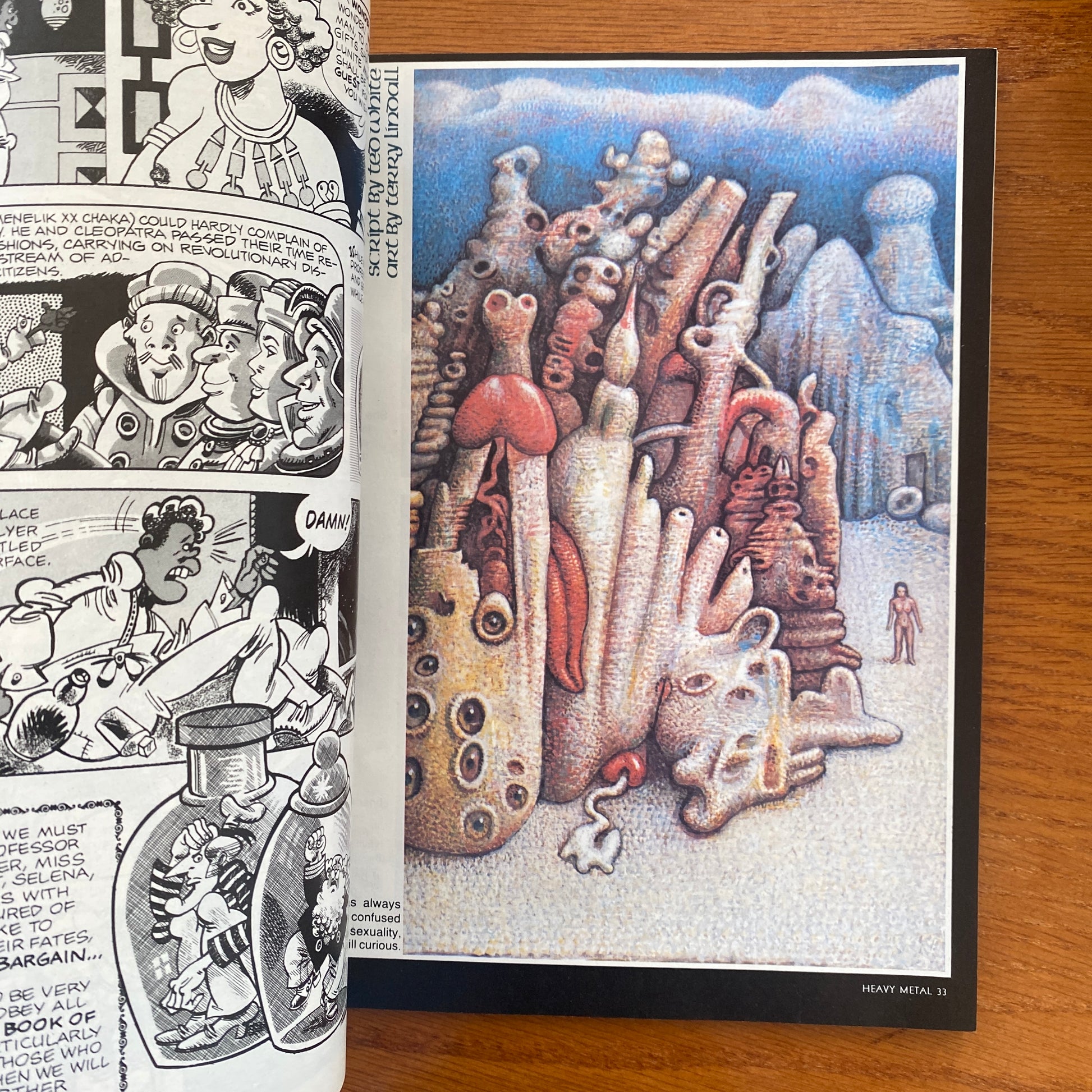 Illustrators like Luis Royo and Alex Ebel contributed artwork over the course of their careers. An adaptation of the film Alien named Alien: The Illustrated Story, written by Archie Goodwin and drawn by Walter Simonson, was published in the magazine in 1979.