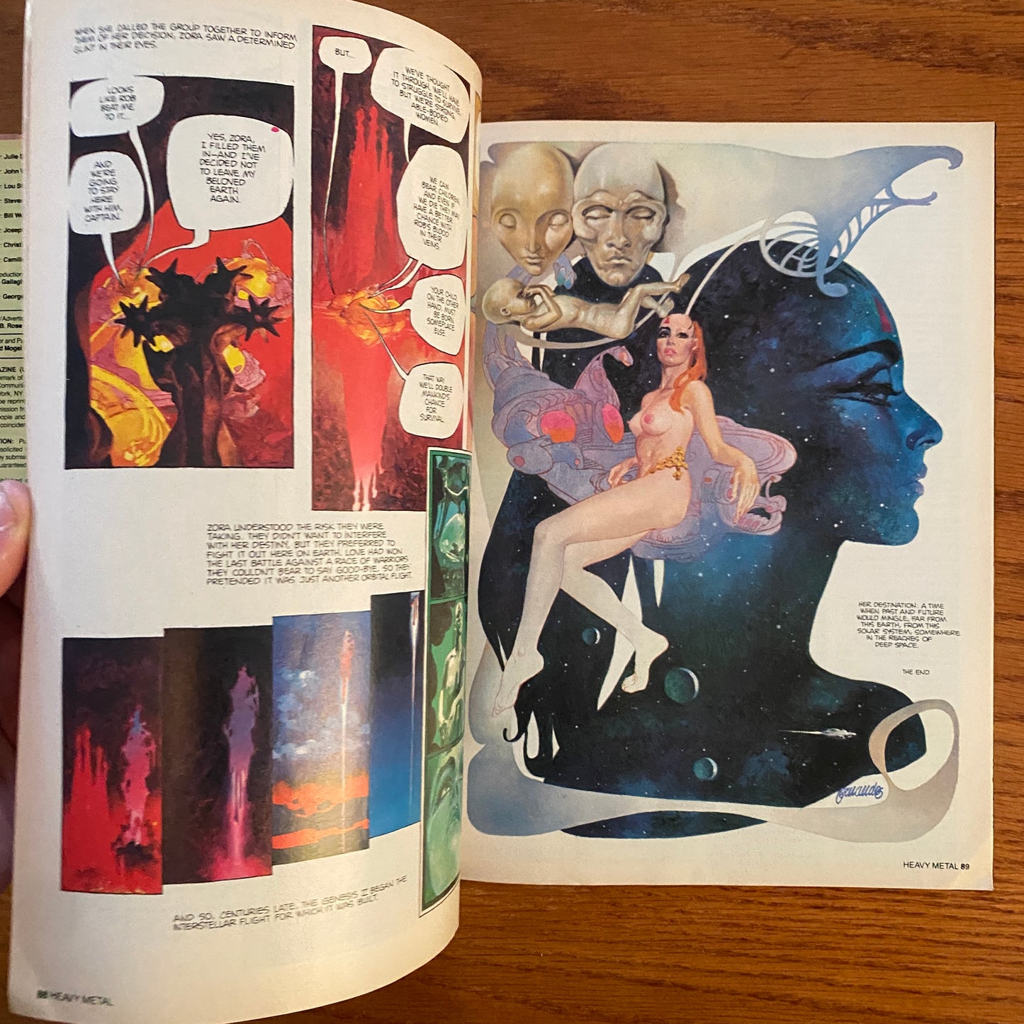 Illustrators like Luis Royo and Alex Ebel contributed artwork over the course of their careers. An adaptation of the film Alien named Alien: The Illustrated Story, written by Archie Goodwin and drawn by Walter Simonson, was published in the magazine in 1979.