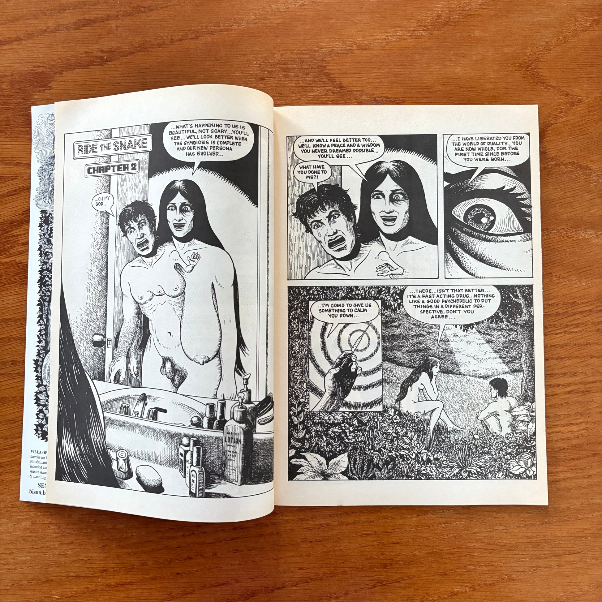 The final issue in Mack White’s cult underground comic series blends psychedelic storytelling, myth, and satire. Featuring sharp black-and-white artwork, this issue includes tales of divine mischief, ancient cults, hallucinatory visions, and conspiracy-fueled weirdness. A must-have for fans of surreal comix, Villa of the Mysteries delivers a bold mix of EC-style visuals and trippy narratives.