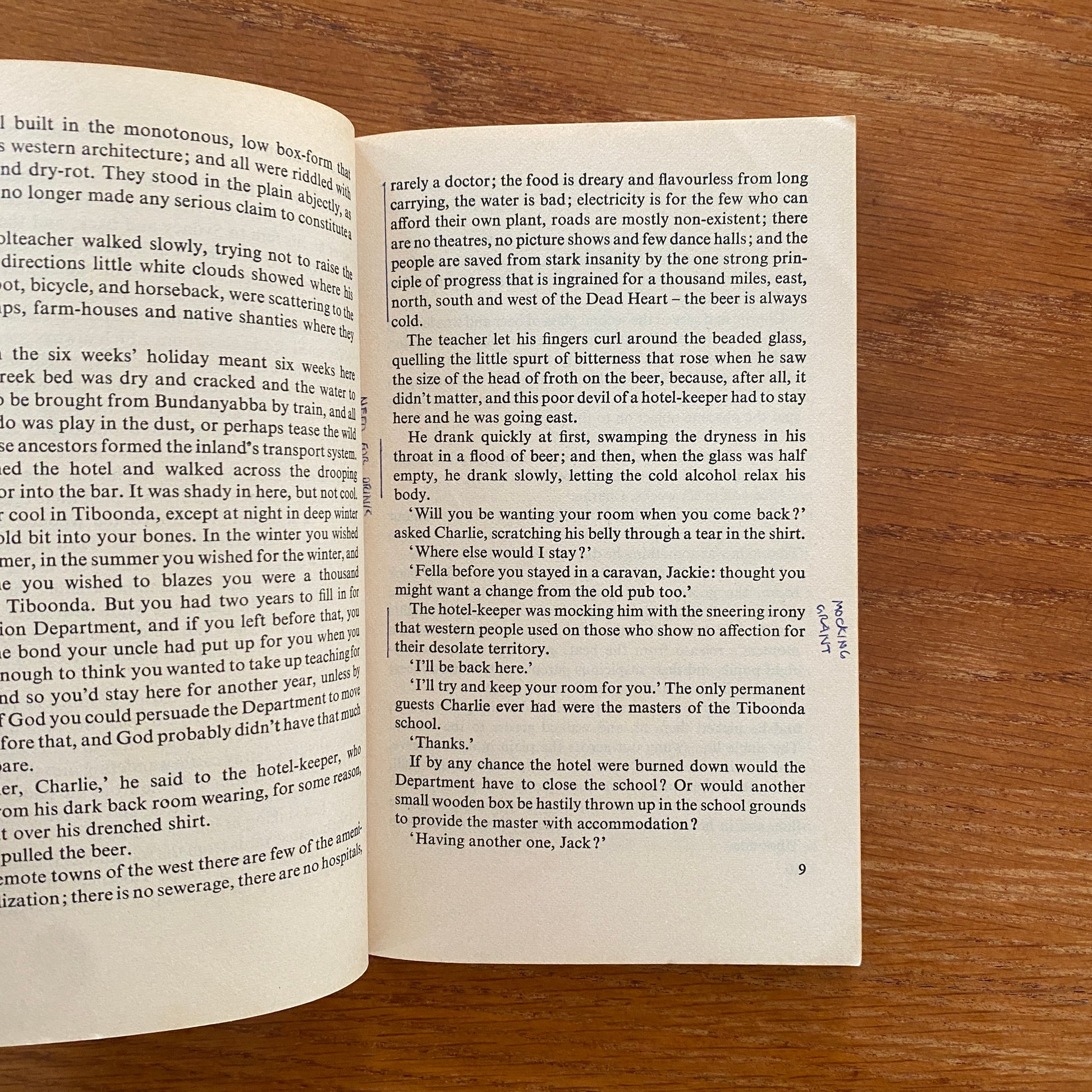 As Grant becomes more immersed in the town's violent and debauched culture, he experiences a series of increasingly disturbing events, including brutal kangaroo hunting, drunken brawls, and sexual encounters with a promiscuous hotel maid. Cook's vivid and visceral descriptions of the Outback landscape and the characters who inhabit it create a sense of unease and dread that permeates the entire novel.