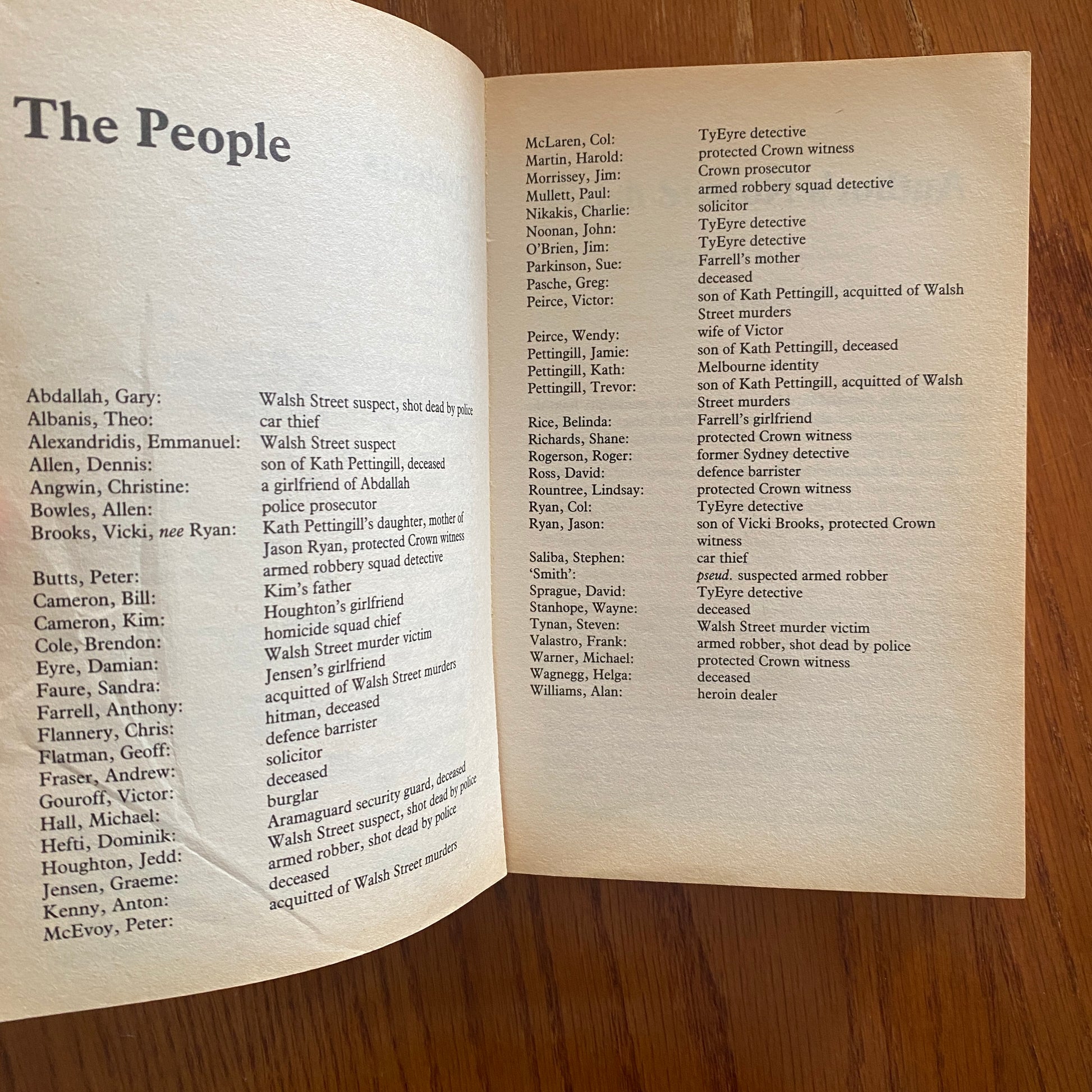 Written from the perspective of an investigative journalist, this gripping chronicle explores the murders of Australian Constables Damian Eyre and Steven Tynan in October of 1988. Revised and updated, this fascinating account exposes one of MelbourneÍs best-known crime families as the main players in the murders brothers Trevor and Victor Peirce were acquitted and sister Vicki became a police-protected witness.