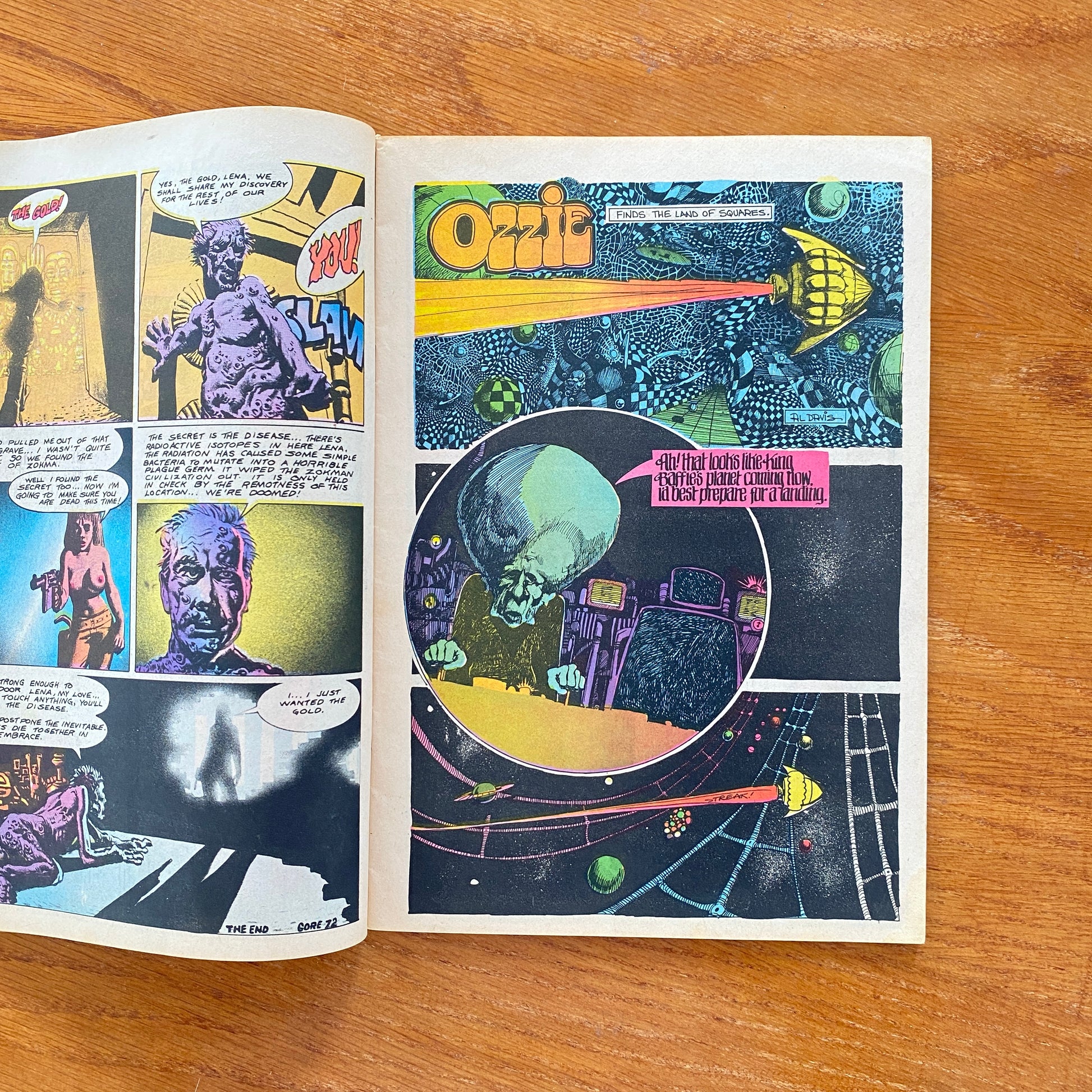 For Mature Readers. "The Secret of Zokma," art and story by Richard Corben; "Ozzie," art and story credits unknown; "Moonchild," by Nicola Cuti; "The Life Battery," by Eando Binder (first published in the July, 1939 edition of the pulp mag "Startling Stories"), adaptation by Bill Spicer, art by Landon Chesney. Cover by Chesney.